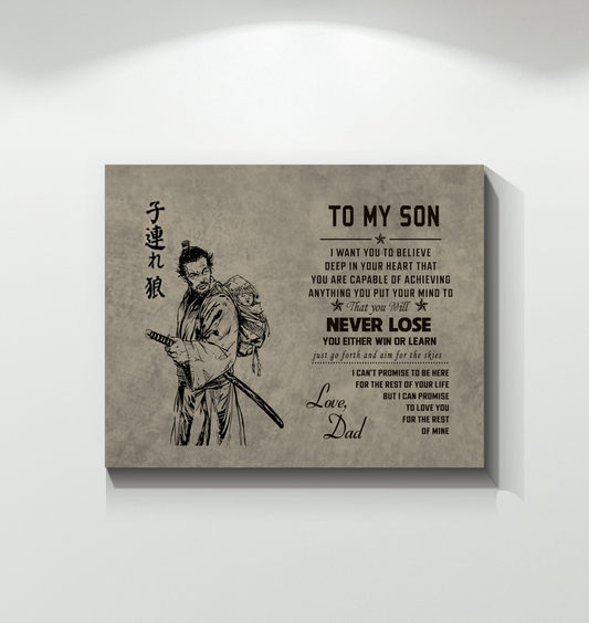 Samurai Dad to My Son You Will Never Lose - Art Wall Canvas Framed Poster (20x16)