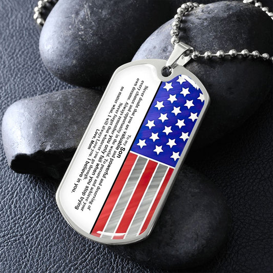 To My Son Dogtag Necklace Gift, Birthday Gift For Son, Christmas Gift From Mom To Son, Graduation Gift Standard Box + Silver Necklace by VIRAGIL Brand ASIN: B0BK4L5B9V SKU: NecklaceforSON-Mom_8Standard+Silver