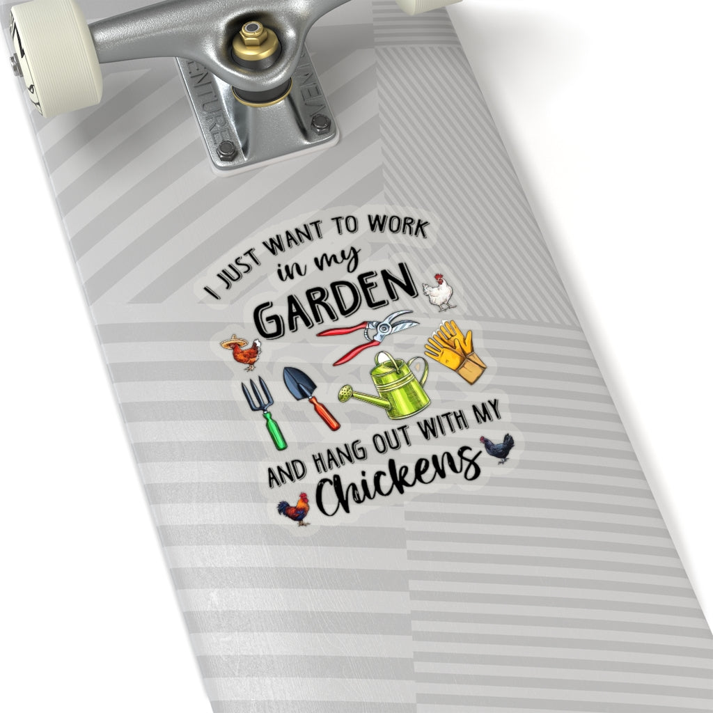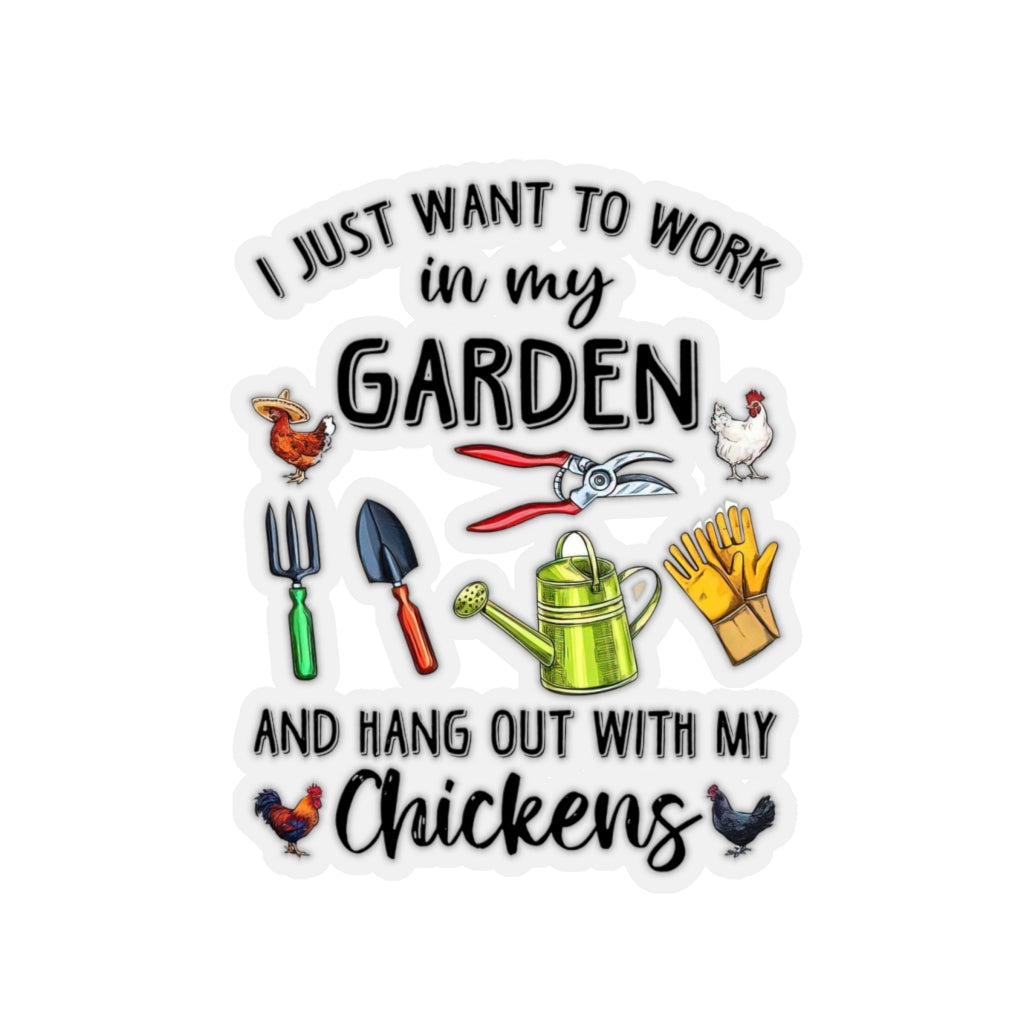 1 Pcs Sticker Decor I just Want to Work in My Garden and Hang Out with My Chickens Sticker, Garden Sticker, Chicken Sticker, Farm Sticker Size Custom Sticker for Laptop Decal Wall Laptop Full SizeStickers
