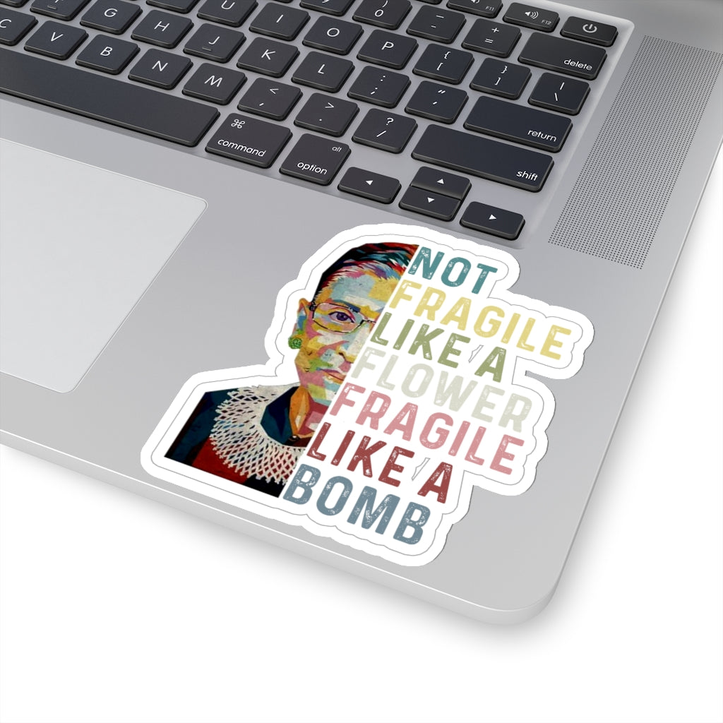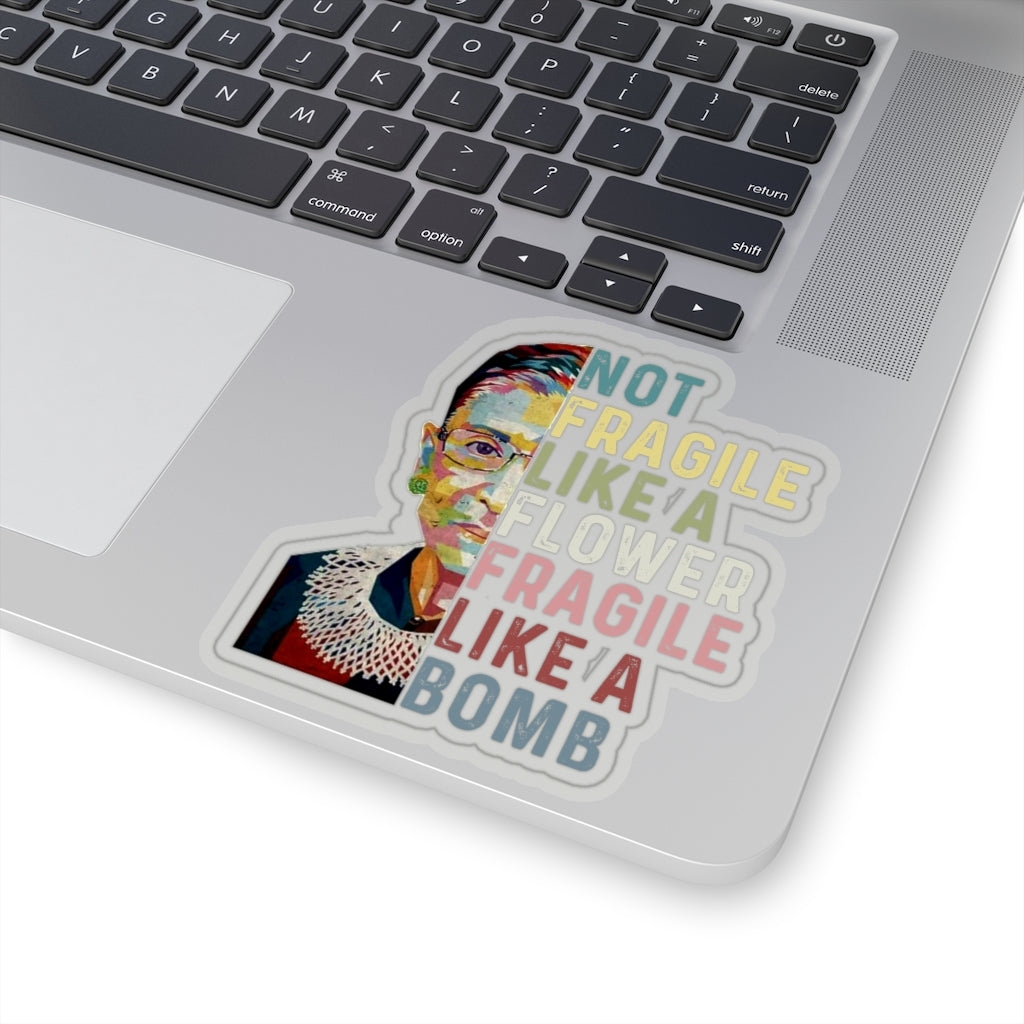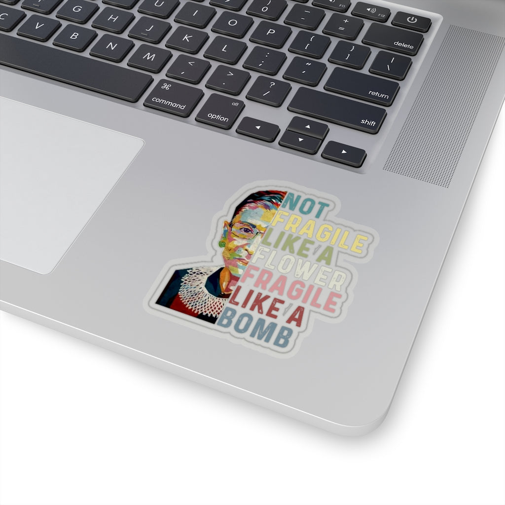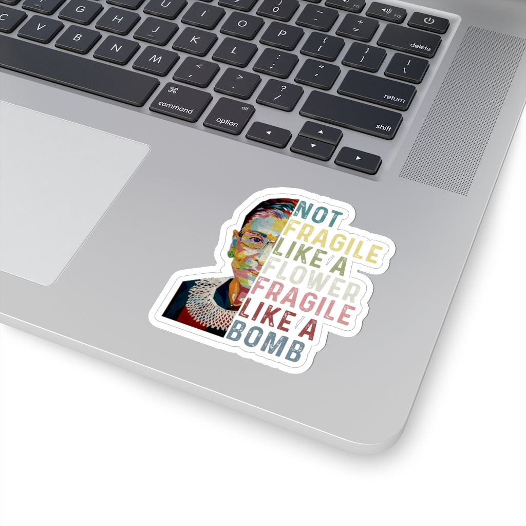 1 Pcs Sticker Decor Ruth Bader Ginsburg Quote Kiss-Cut Stickers, Notorious RBG Sticker, Feminist Sticker, Not Fragile like a Flower Fragile like a Bomb size custom Sticker for Laptop Decal Wall Laptop