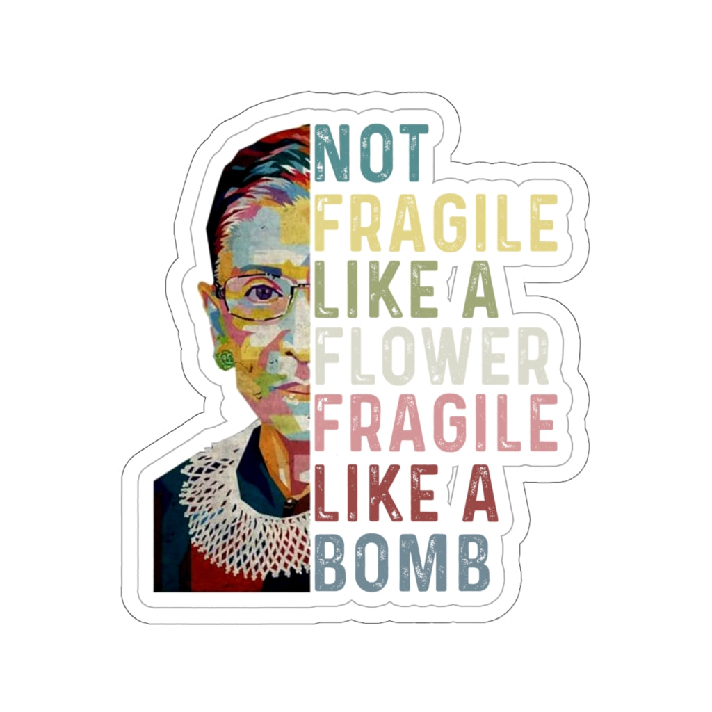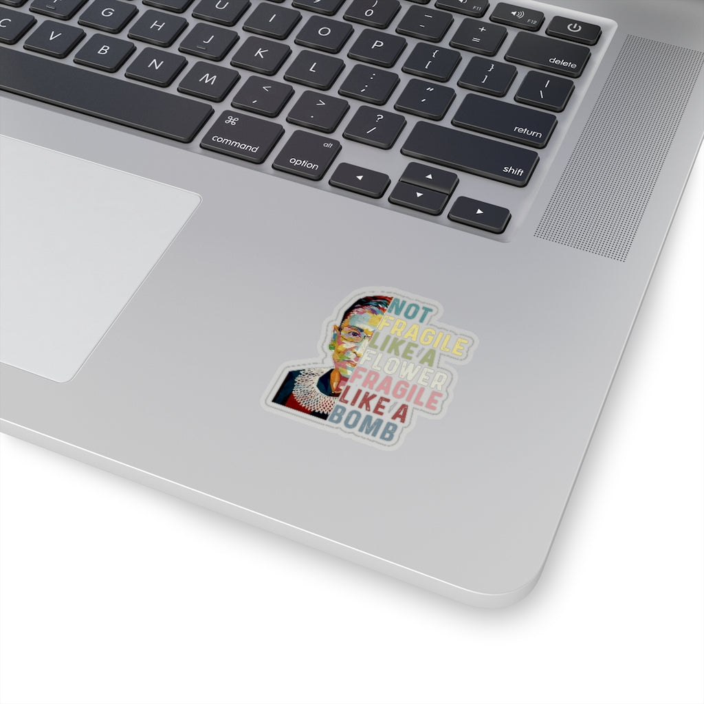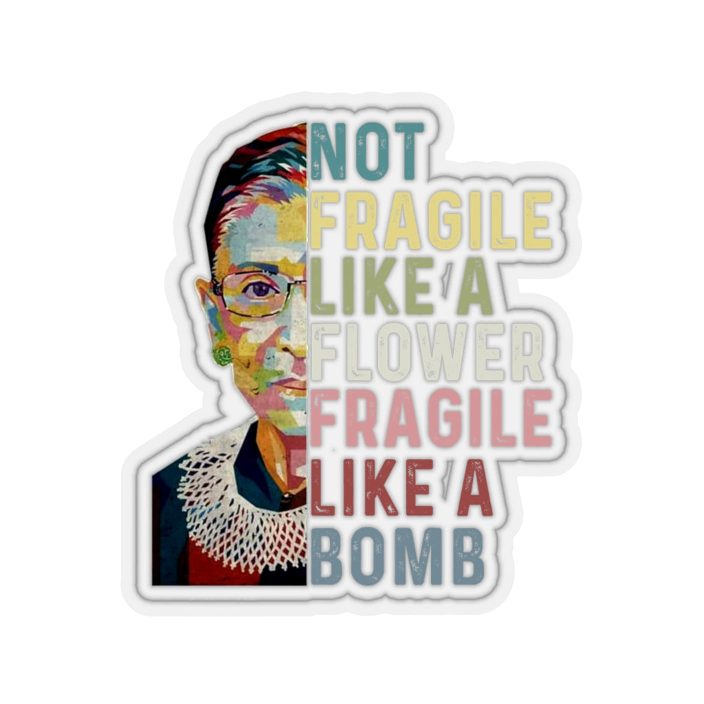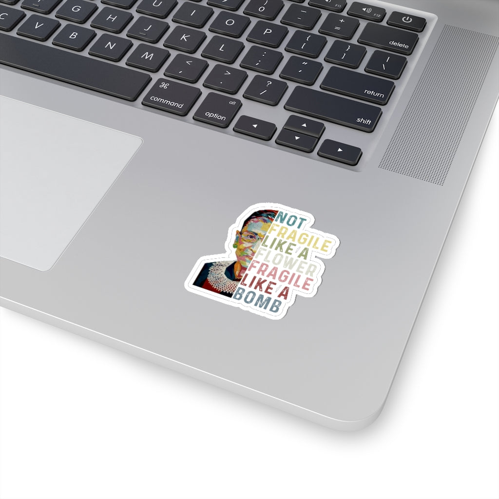 1 Pcs Sticker Decor Ruth Bader Ginsburg Quote Kiss-Cut Stickers, Notorious RBG Sticker, Feminist Sticker, Not Fragile like a Flower Fragile like a Bomb size custom Sticker for Laptop Decal Wall Laptop