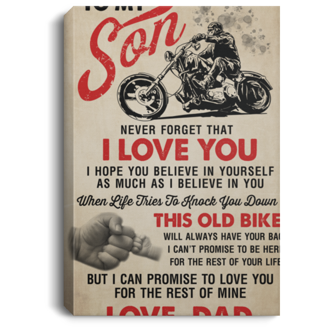 Awesome Quote Paper Poster Old Biker Dad to My Son Never Forget That I Love You – Home Decor Gift Family Unisex Awesome On Birthday, Decor Home Durable Print 24x36 CANPO75 Portrait Canvas .75in Frame