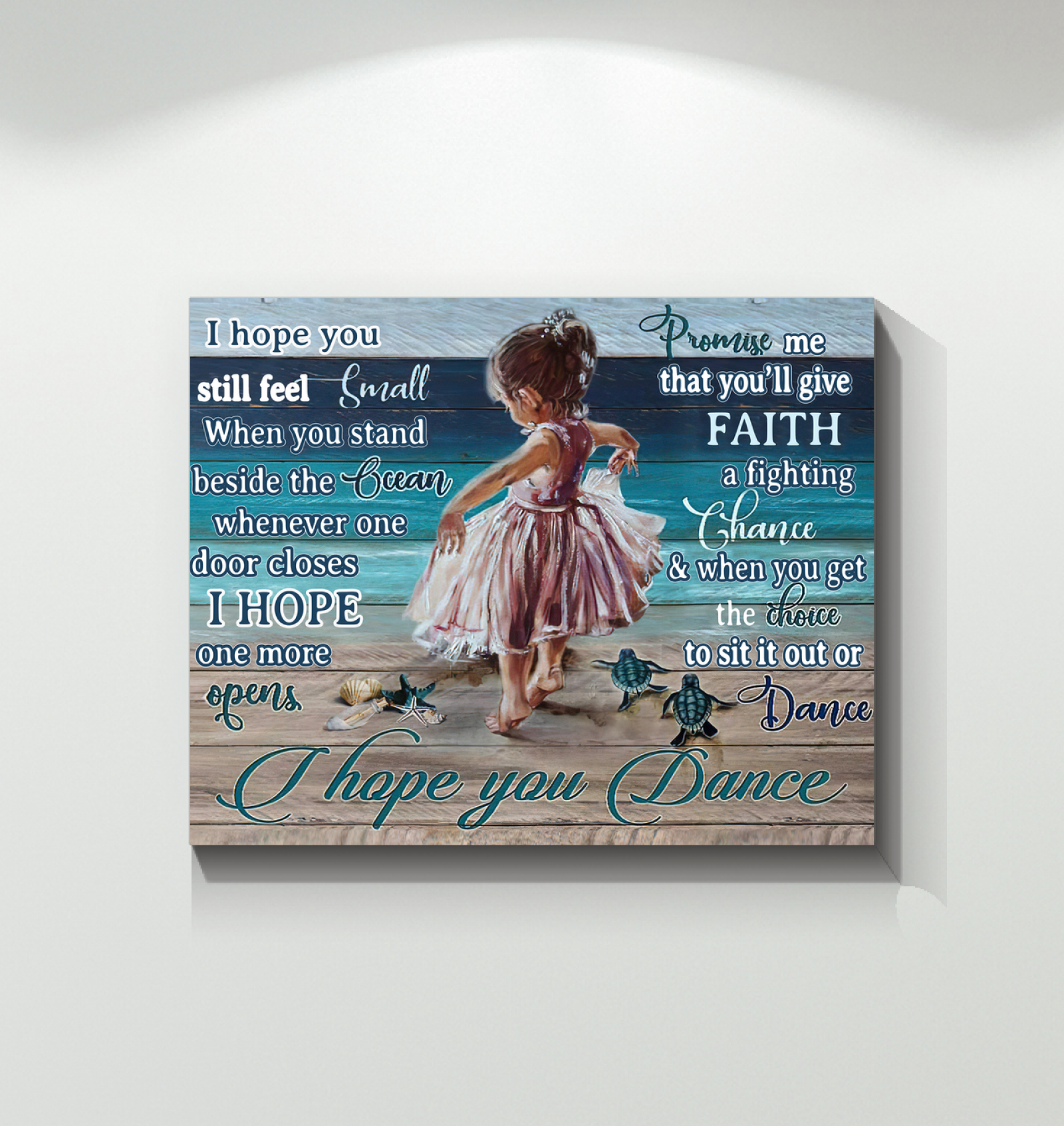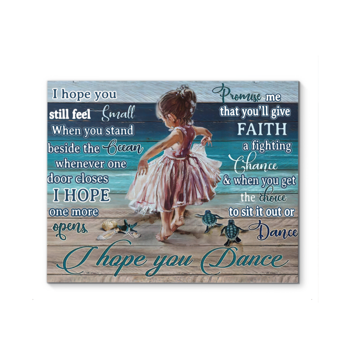 Beach Little Girl I Hope You Dance I Hope One More Opens Poster Decor (Canvas Framed, 10 x 8)