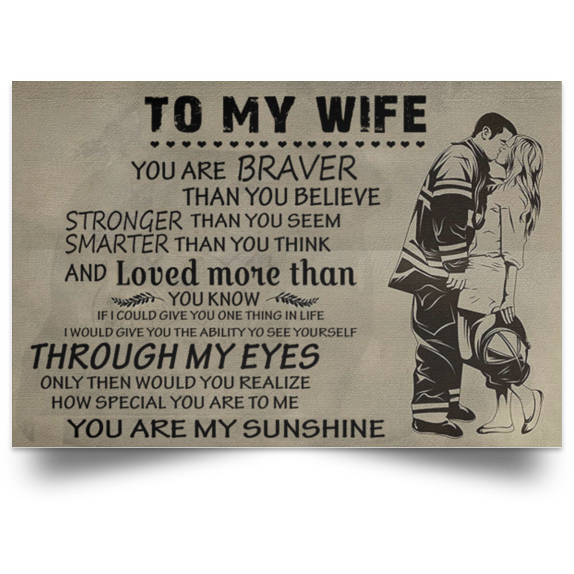 Birthday Gifts Inspiration Gift Firefighters Poster a My Wife You are Braver Than You Believe Stronger Smarter Through My Eyes You are My Sunshine Awesome Perfect for wall decor Size POSLA Satin Landscape Poster