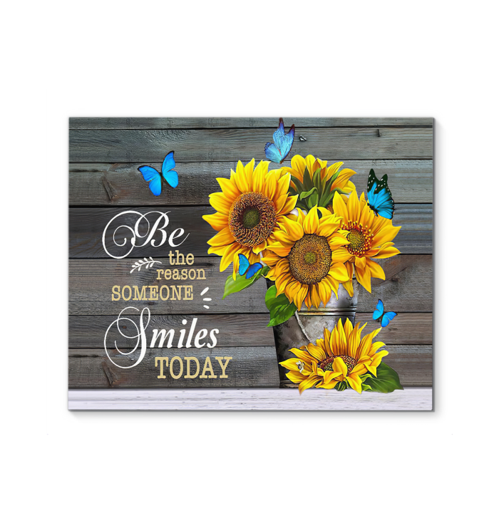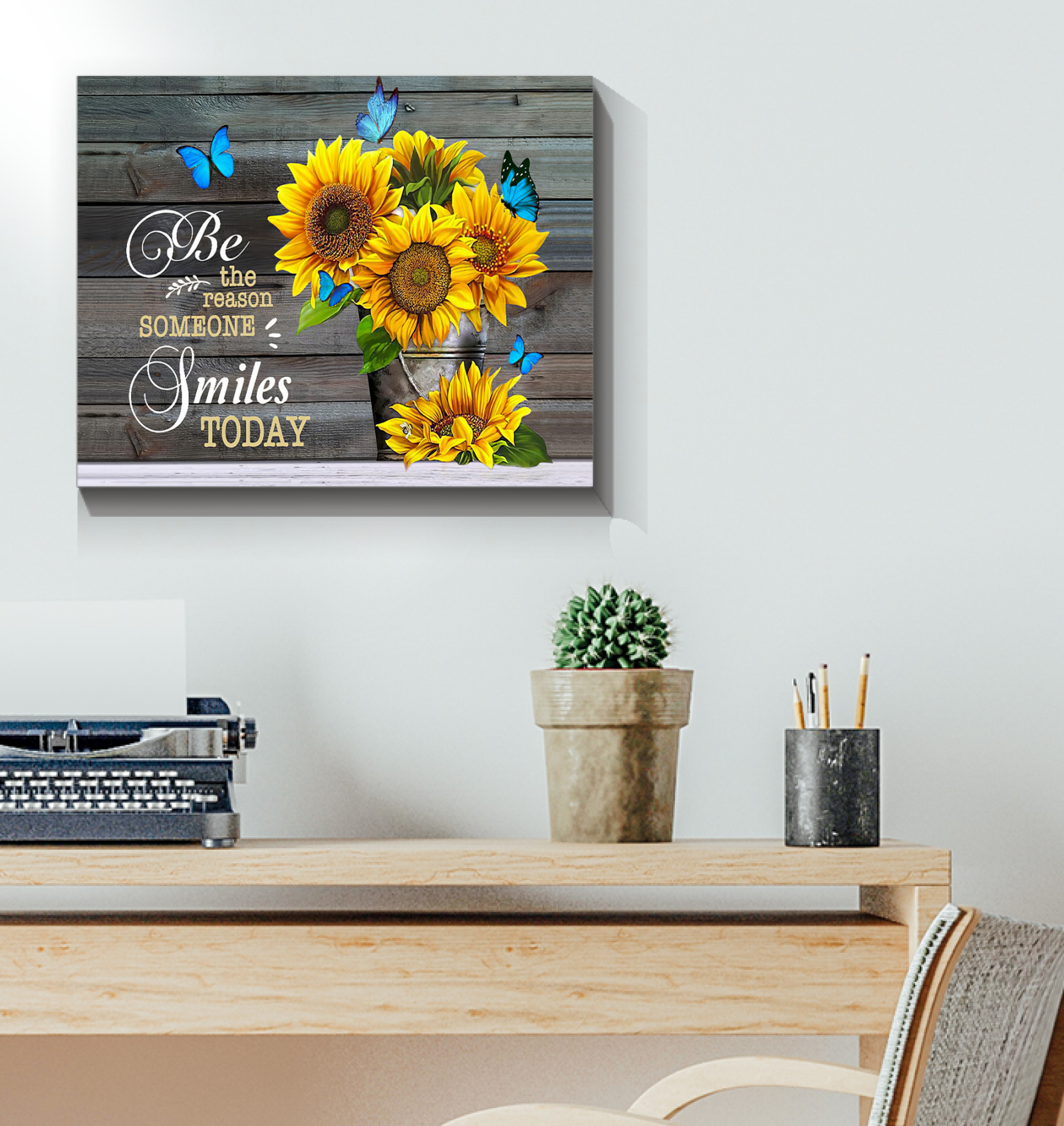 Butterfly Sunflower Be The Reason Someone Smiles Today Best Wall Poster (Canvas Framed, 20x16)