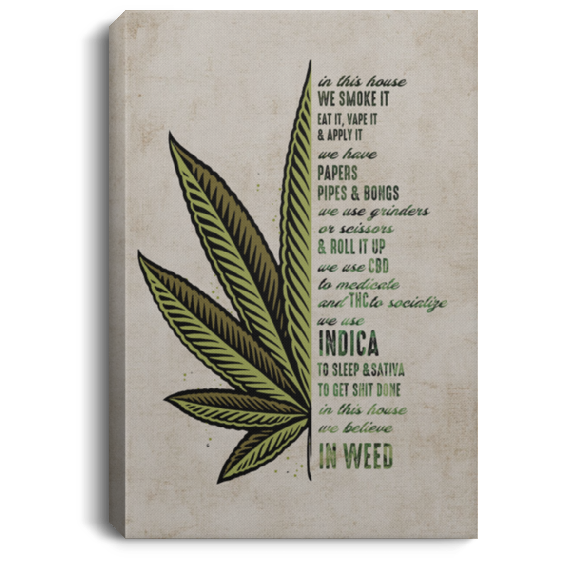 Canvas Framed Wood in This House We Smoke It Eat It Vape It We Believe in Weed – Cannabis – Family Friend Gift Unisex On Christmas, Awesome Birthday Decor Home Print Wall Art Size CANPO75 Portrait Canvas .75in Frame