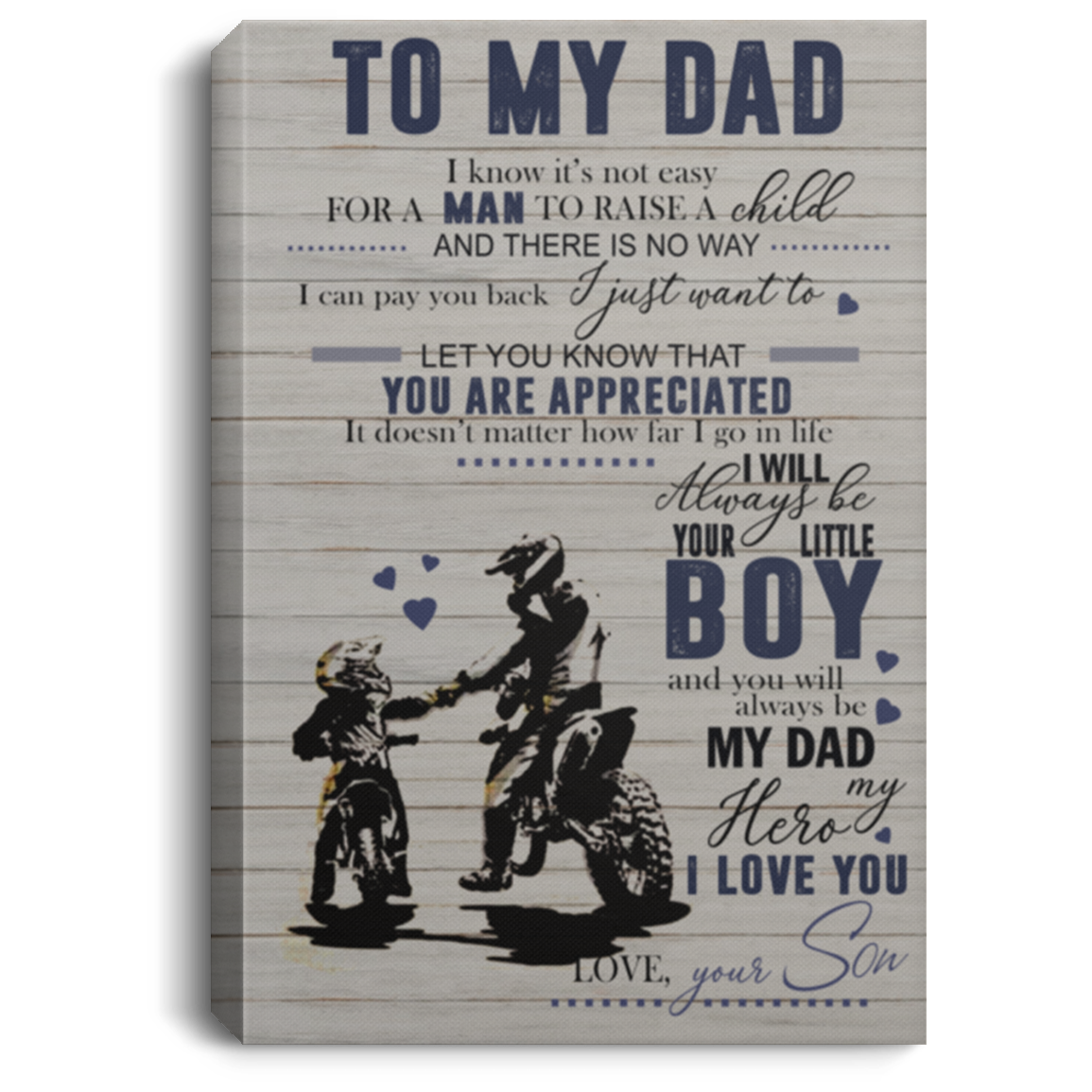 Canvas Framed Wood Motocross to My Dad I Know It’s Not Easy for A Man to Raise A Child from Son Gift Family Unisex Awesome On Birthday, Decor Home Durable Print 16x24 CANPO75 Portrait Canvas .75in Frame