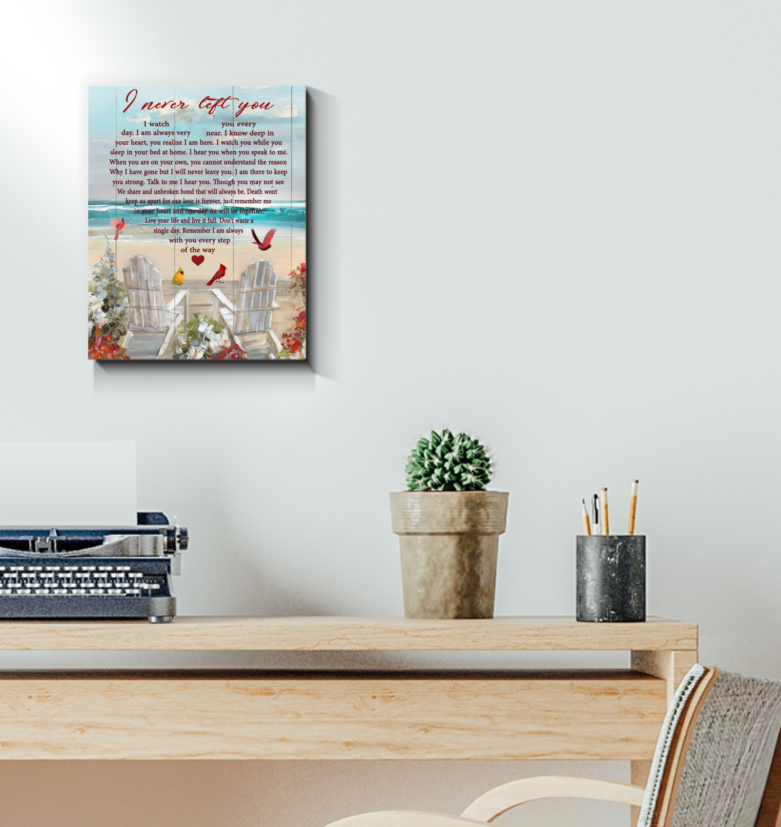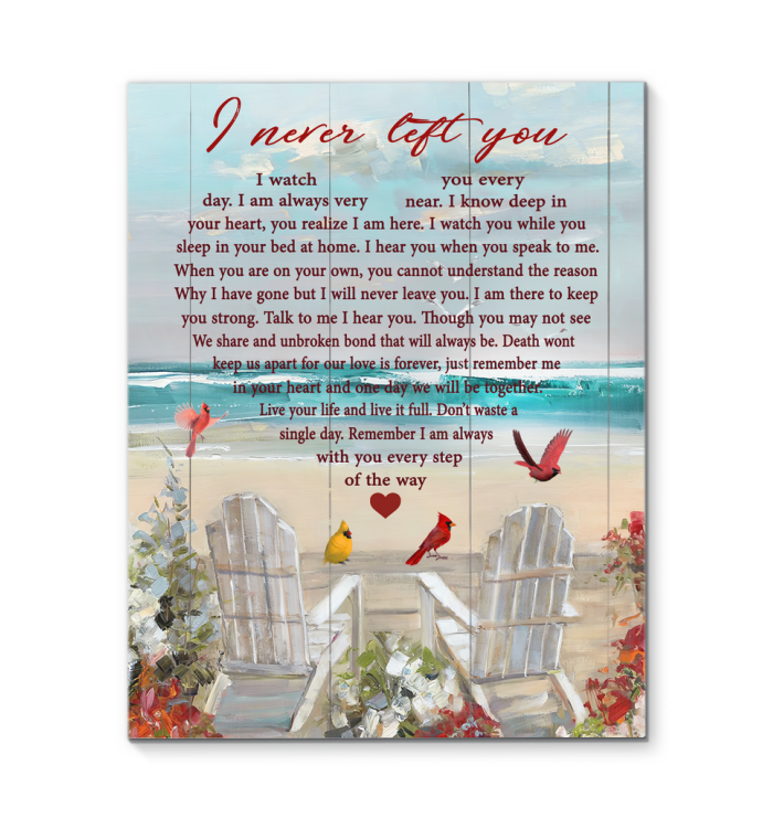 Cardinal Beach I Never Left You - Home Wall Decor Poster (Canvas Framed, 11x14)