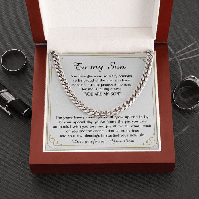 Cuban Link Chain Necklace for Son, Wedding Gift for Son from Mom, Son Sentimental Wedding Present, Son Get Married Gift Luxu