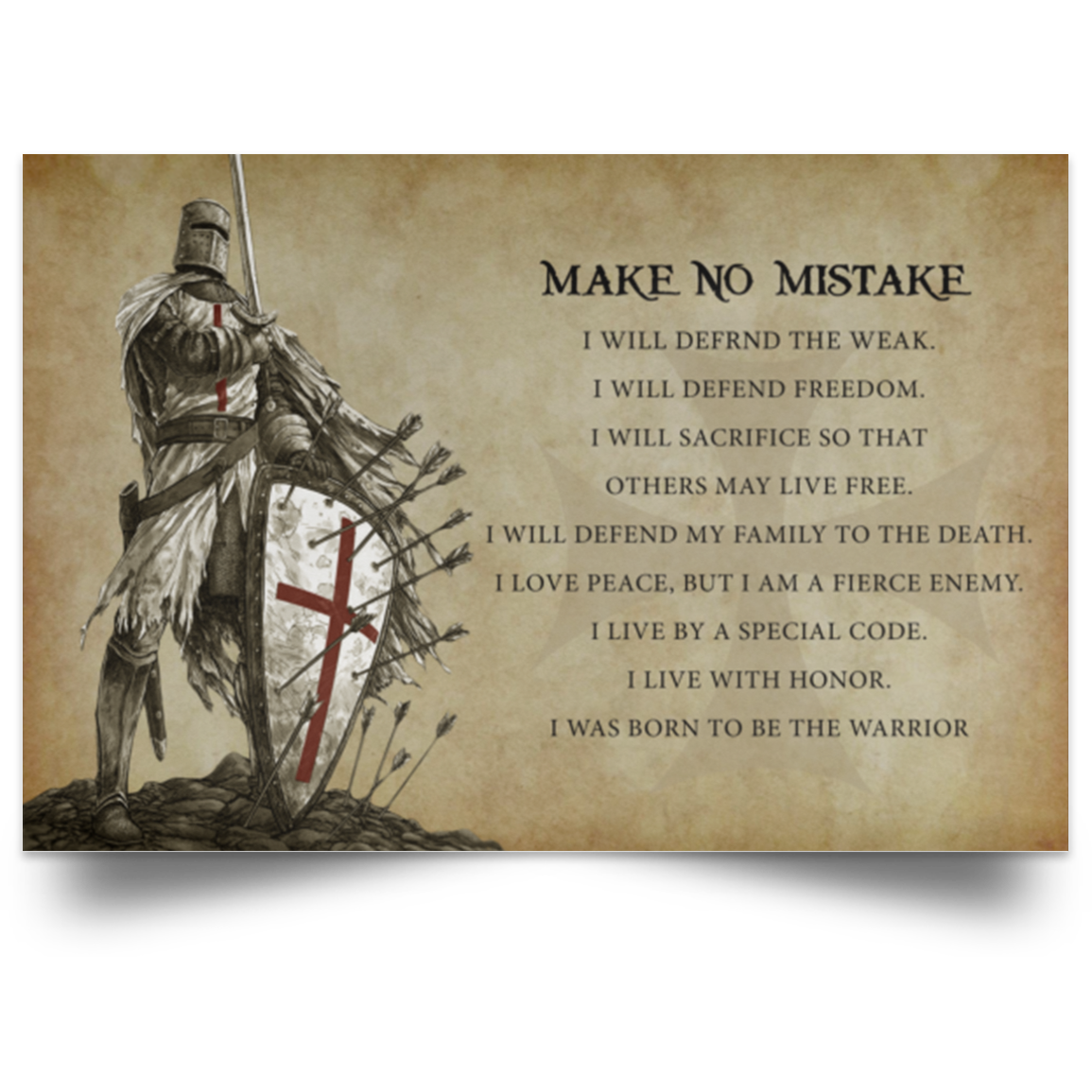 Customized Make NO Mistake - English - Knight Templar Posters Family Friend, Perfect Happy Birthday Gift Decor Bedroom, Living Room Print -White, 12 x 18 POSLA Satin Landscape Poster