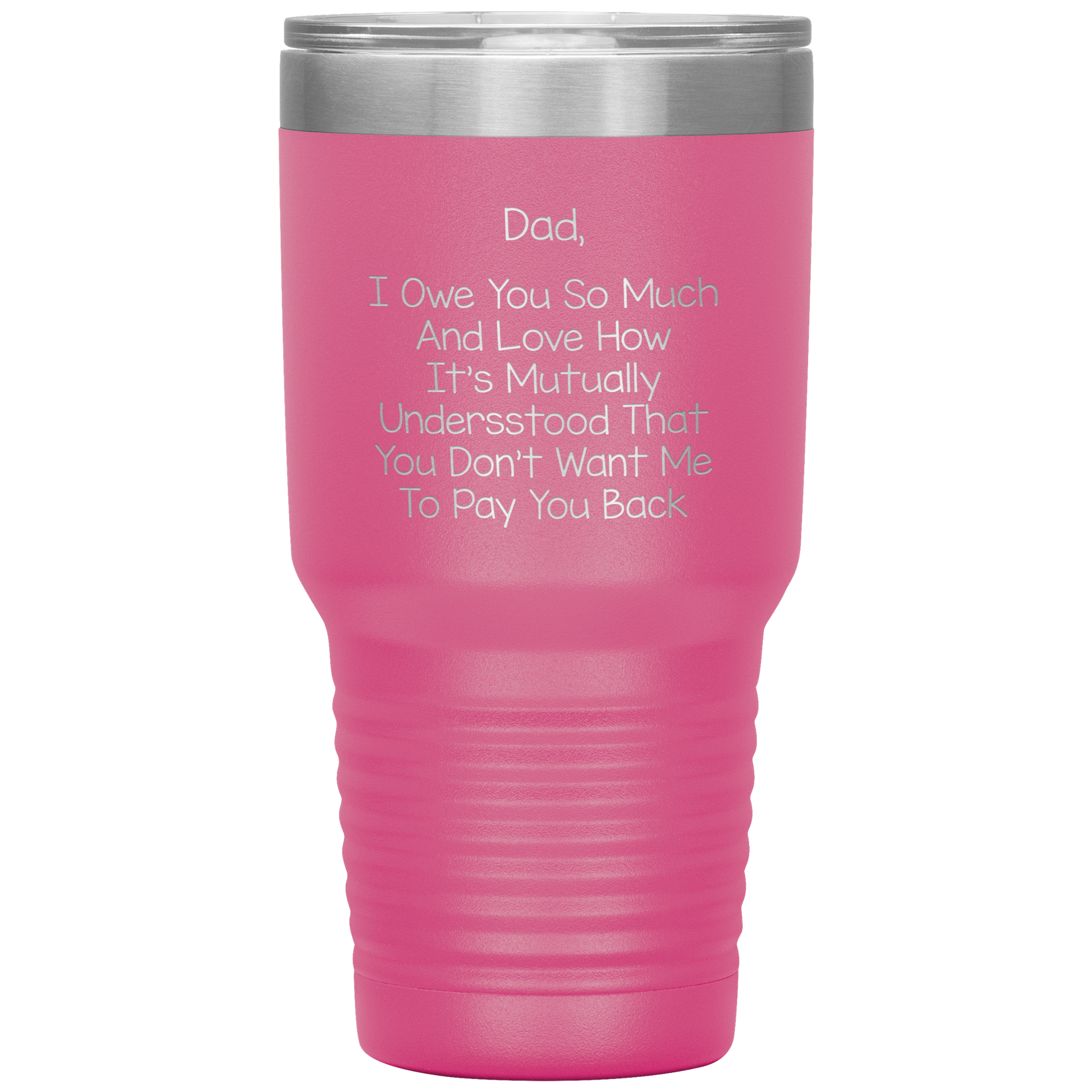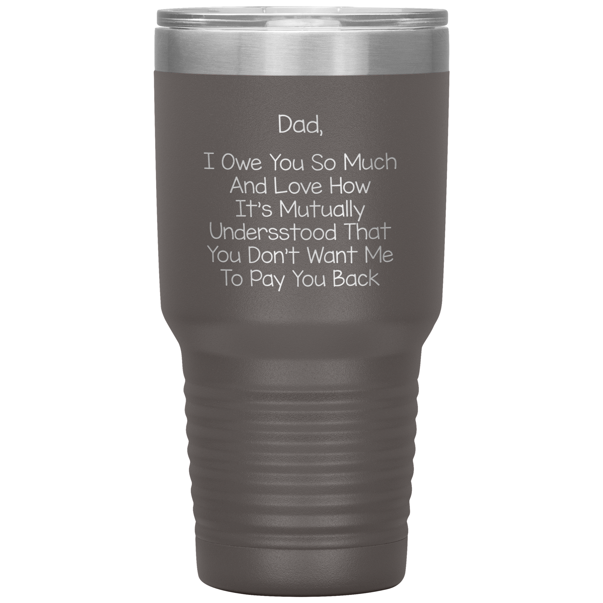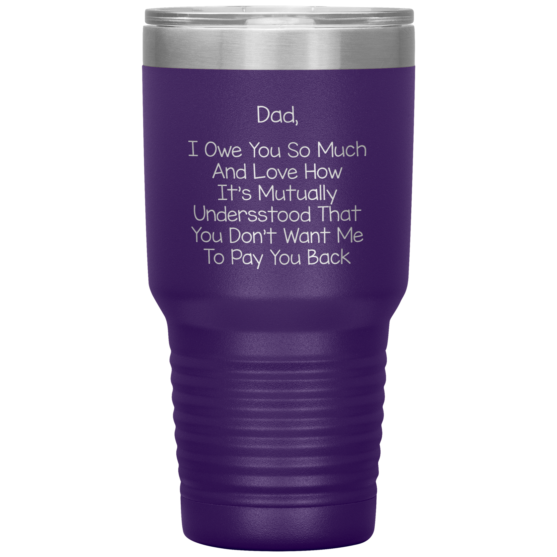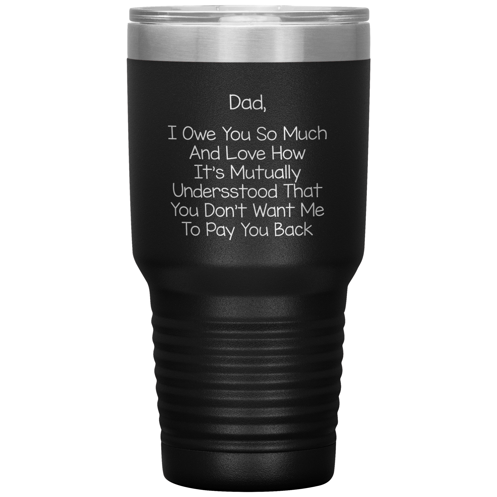 Dad 30oz Tumbler, Dad I Owe You So Much And Love How It's Mutually Understood, Black Insulated Cup Gifts For Father From Daughter Son
