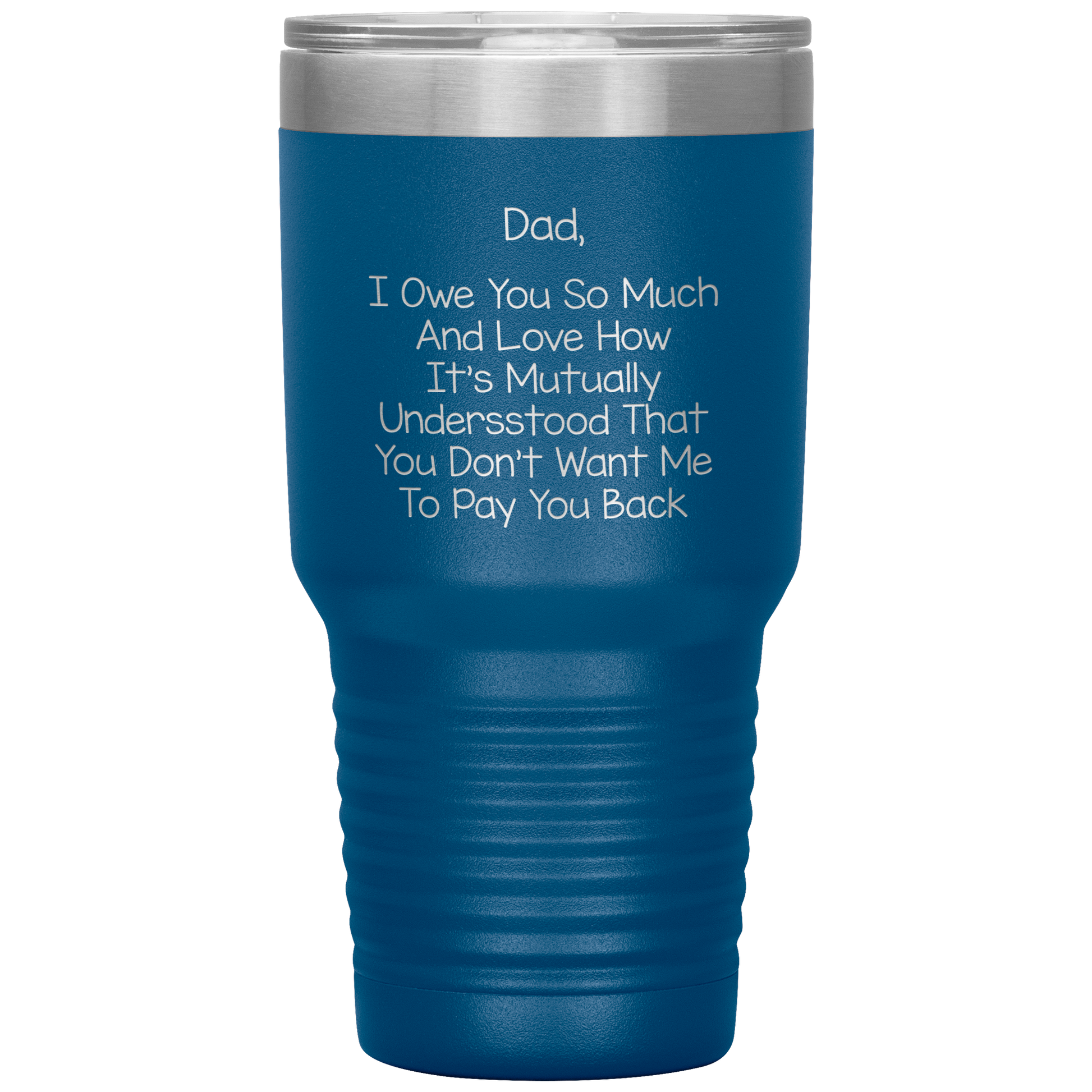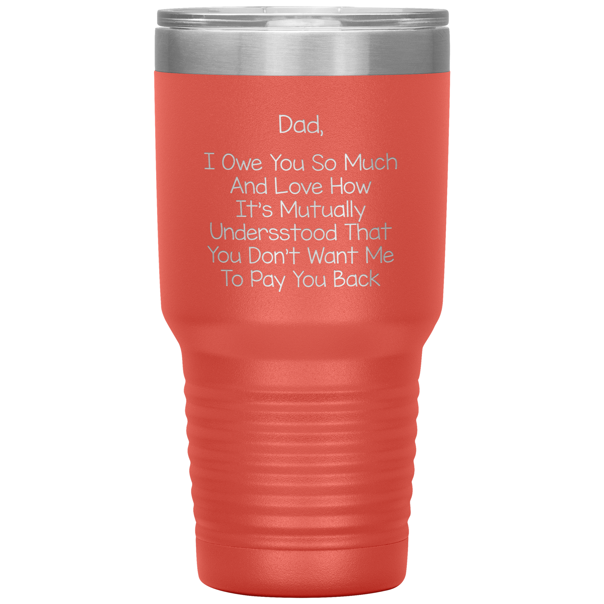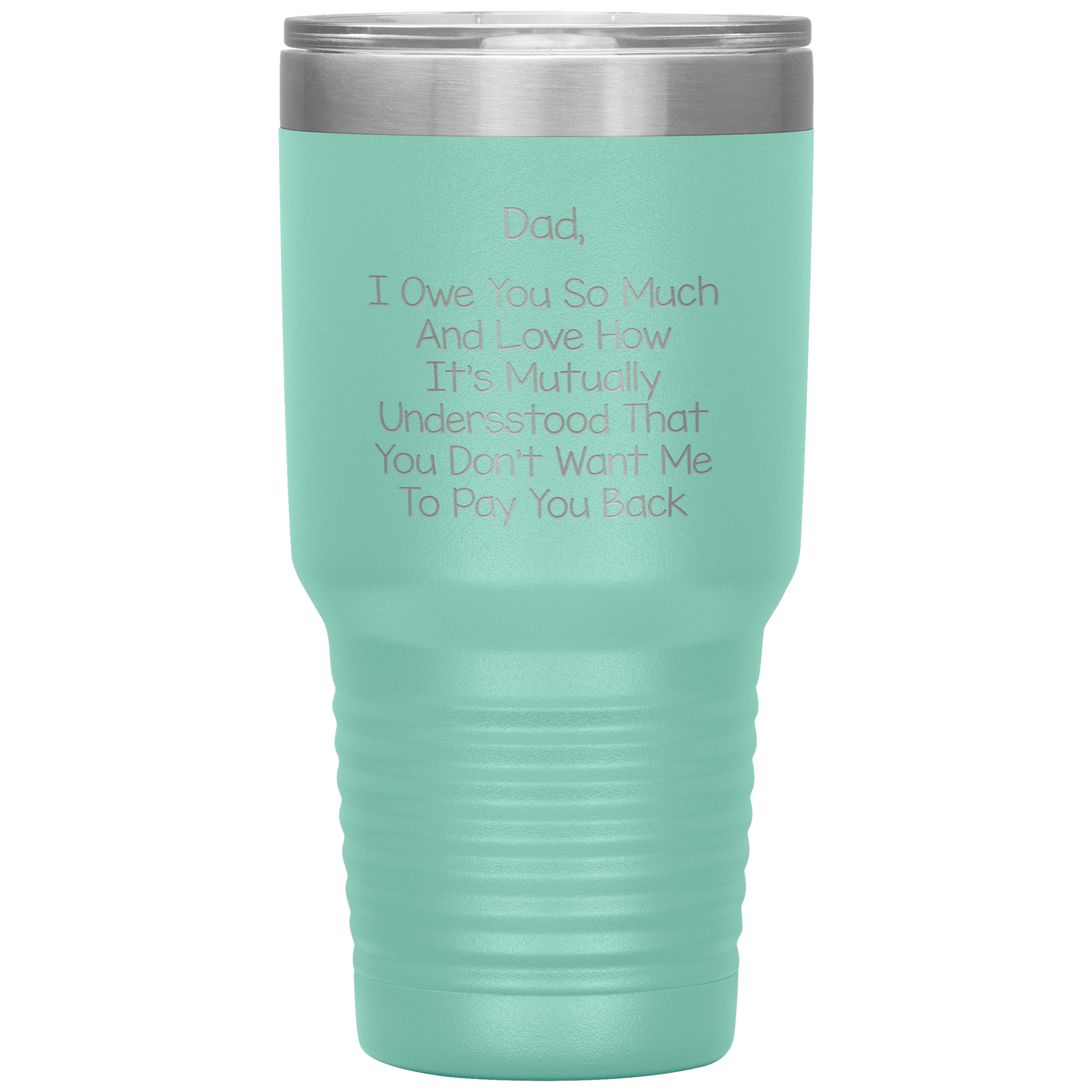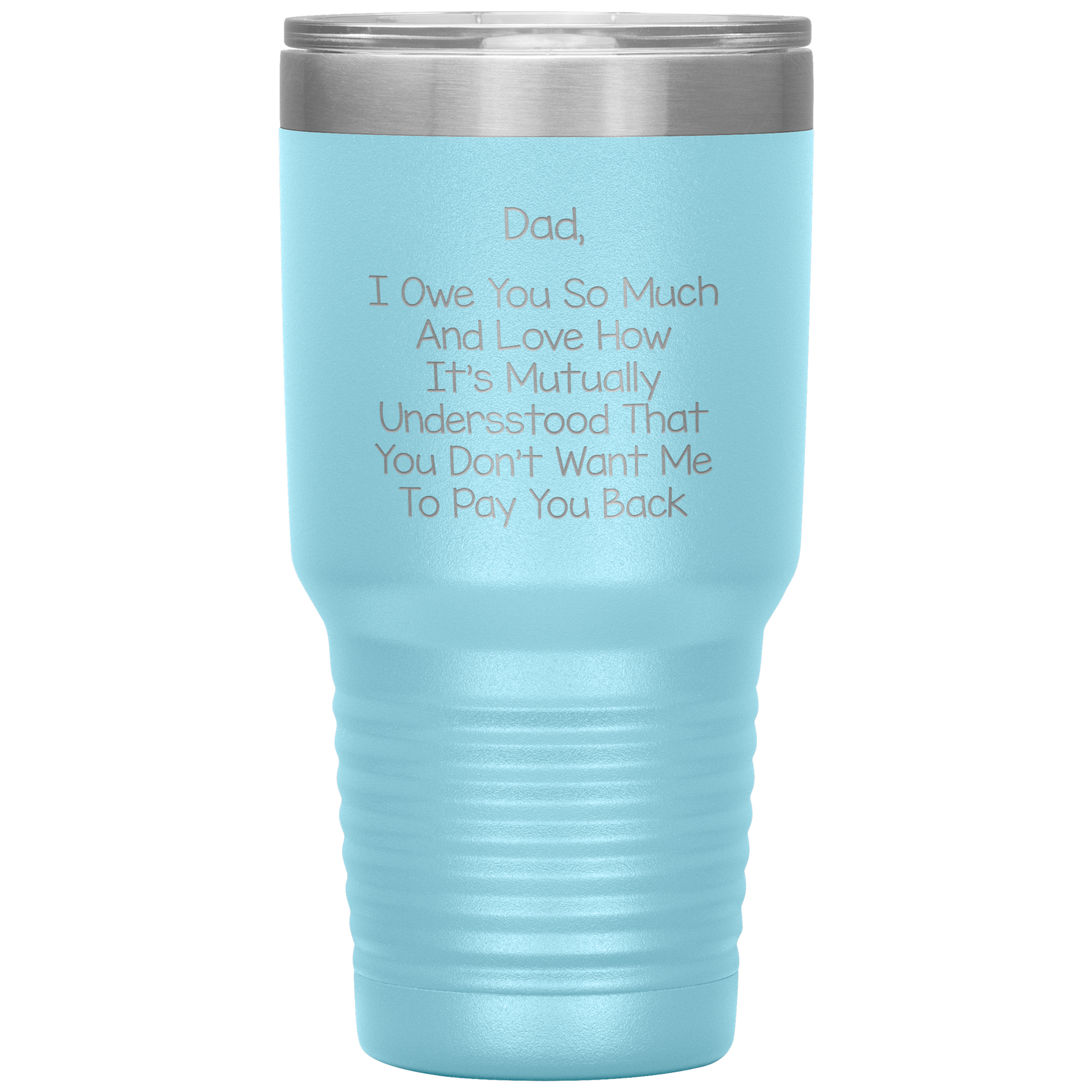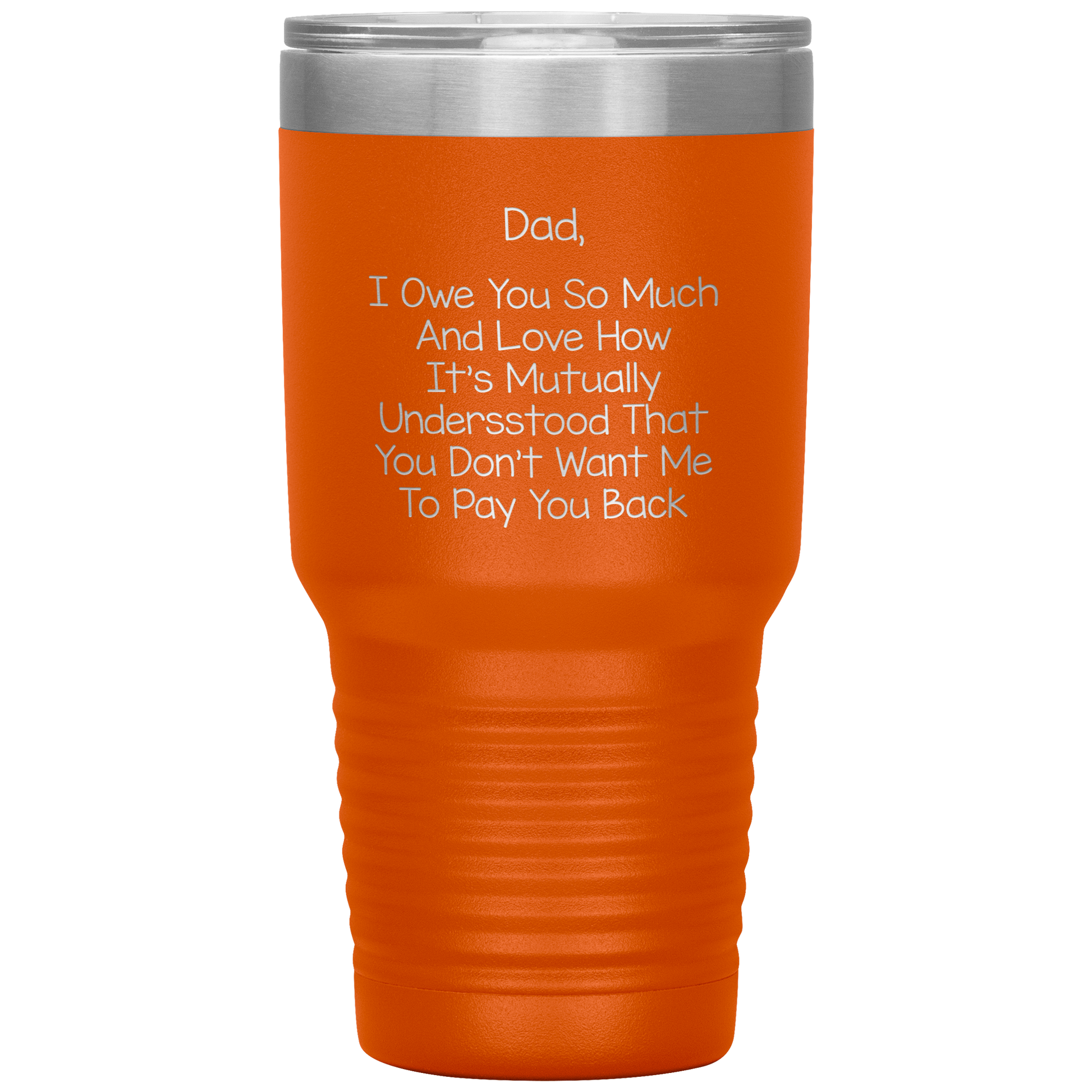 Dad 30oz Tumbler, Dad I Owe You So Much And Love How It's Mutually Understood, Black Insulated Cup Gifts For Father From Daughter Son