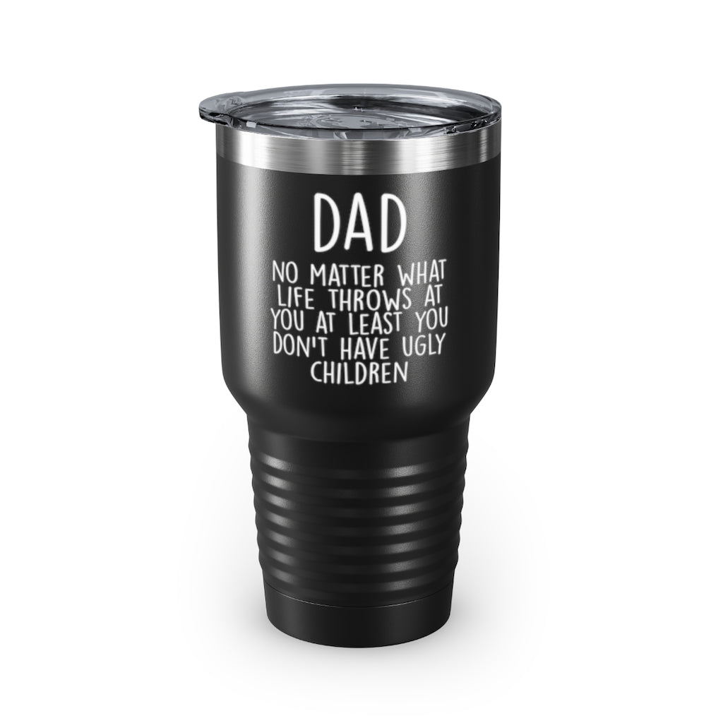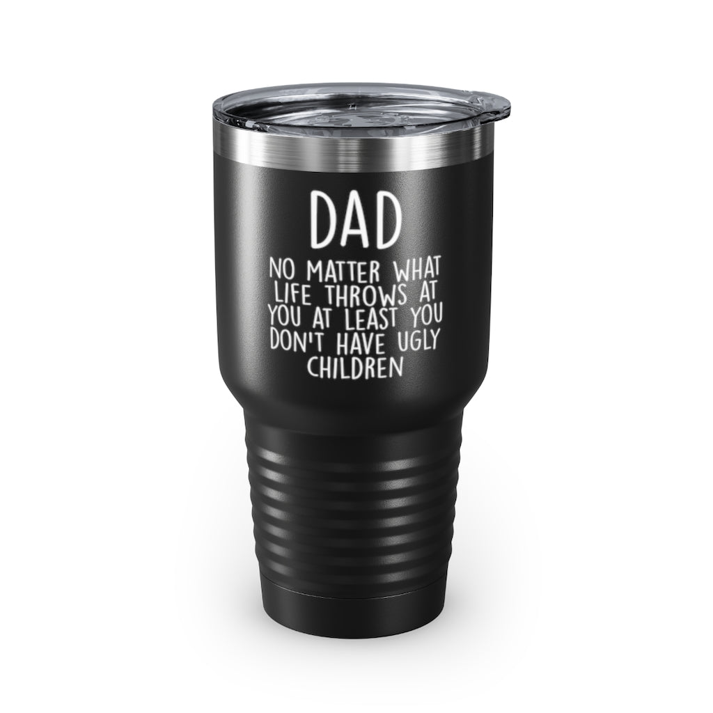 Dad 30oz Tumbler, Dad No Matter What Life Throws At You At Least You Don't Have Ugly Children, Black Insulated Cup Gifts For Father From