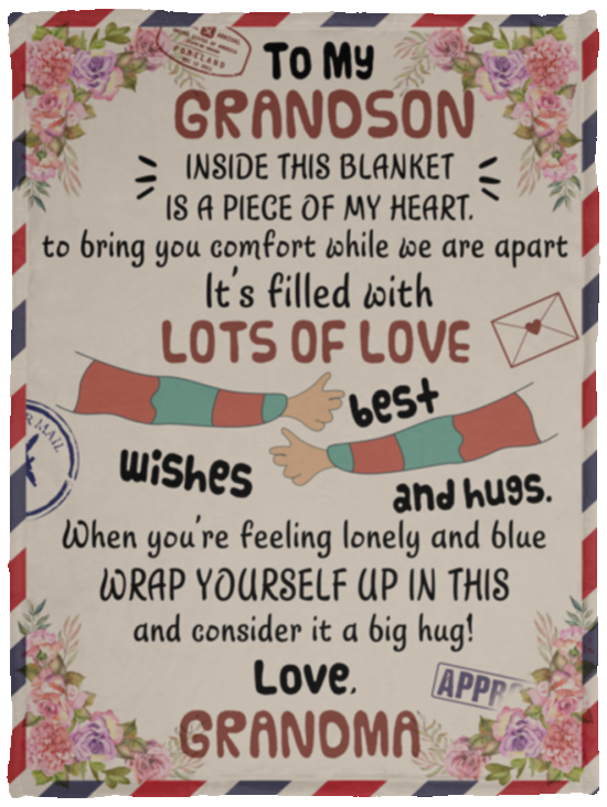Gift Blanket Letter to My Grandson Inside This Blanket is A Piece of My Heart Blanket Cozy Plush Fleece Blanket Size 30x40 inch On Birthday, Christmas, Holiday (1) VPS Cozy Plush Fleece Blanket - 30x40