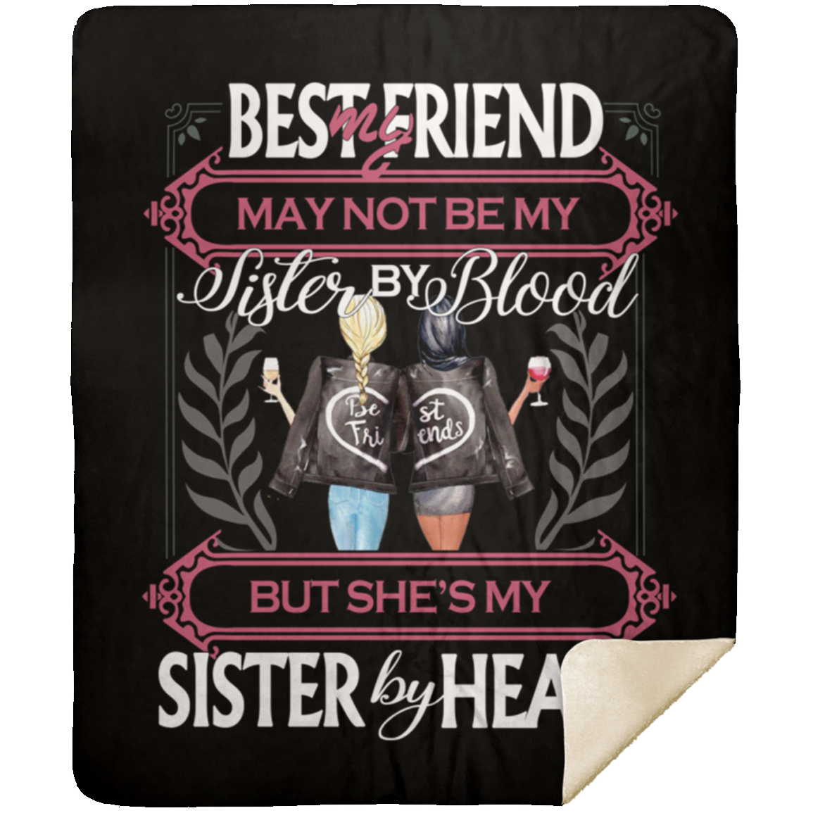 Gifts Blanket My Best Friend May Not Be My Sister by Blood but She’s My Sister by Heart Premium Gift Family Awesome On Birthday, Decor Home Sherpa Blanket 50x60 Black MSHM Premium Mink Sherpa Blanket 50x60