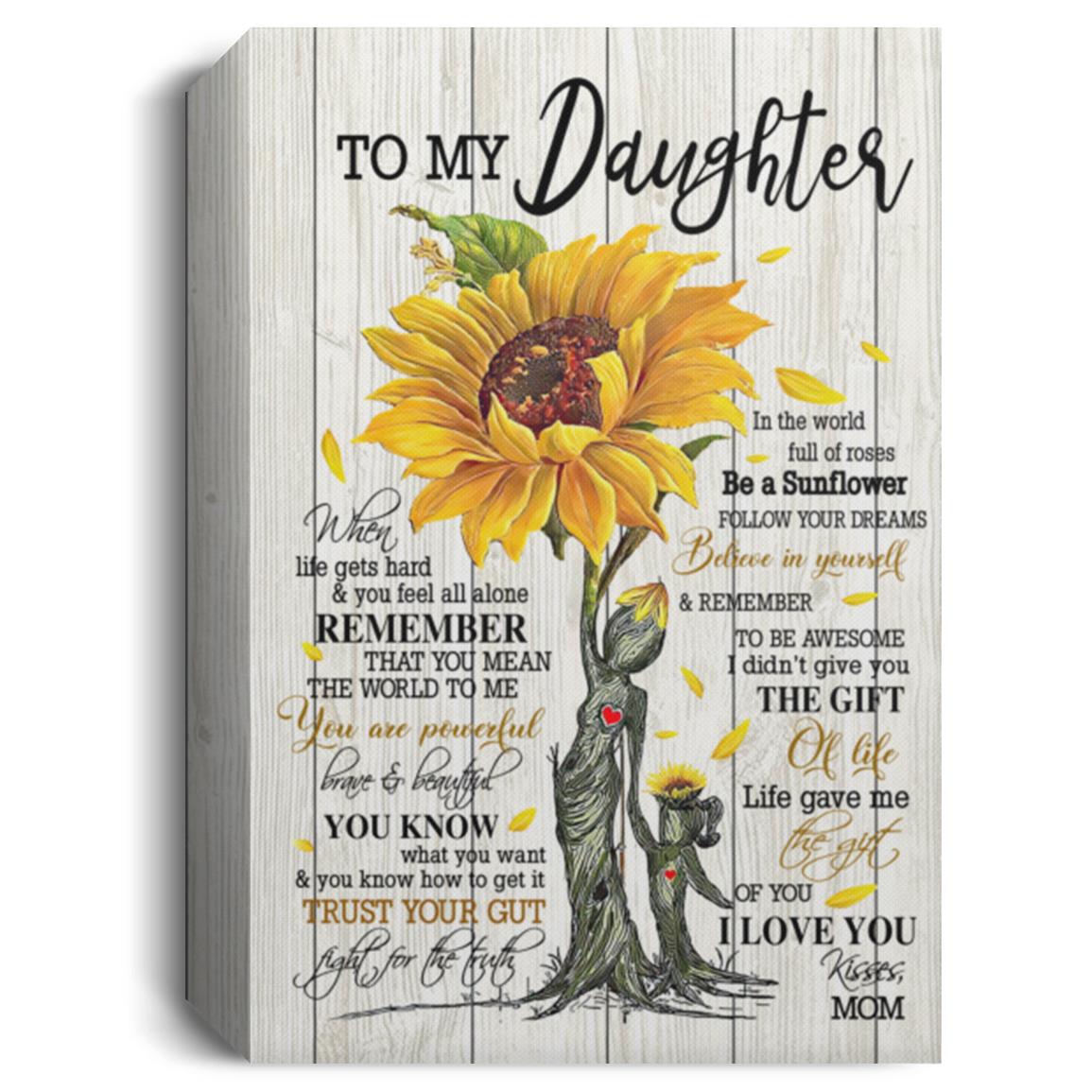 Gifts Personalized Wooden Sunflower to My Daughter Canvas, Sunflower Quote Wall Art, to My Daughter Canvas, Daughter Gifts from Mom Wall Art Gift Family Unisex Awesome On Birthday, Dec CANPO15 Deluxe Portrait Canvas 1.5in Frame