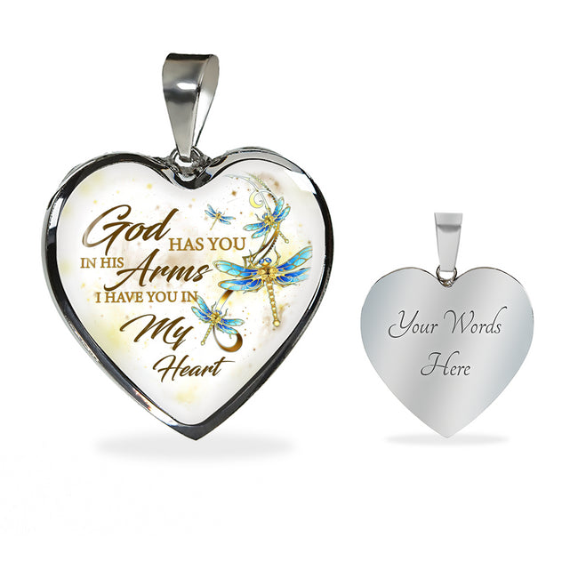 Gifts To Keep Dragonfly God Has You in His Arms I Have You in My Heart Heart Pendant Necklace