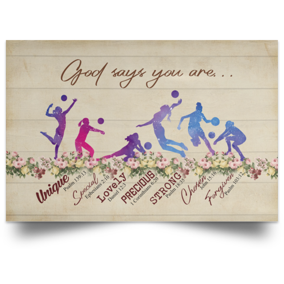 Gifts Volleyball God Says You are Unique Special Lovely Precious Strong Canvas Prints - 0.75 & 1.5 inch Framed - Wall Decor, Canvas Wall Art Custom Size POSLA Satin Landscape Poster