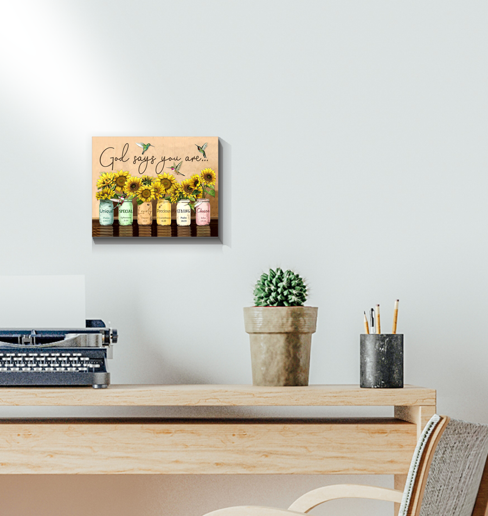 God Says You are Hummingbird Sunflower Wall Sunflower - Art Wall Canvas Framed Poster (10x8)