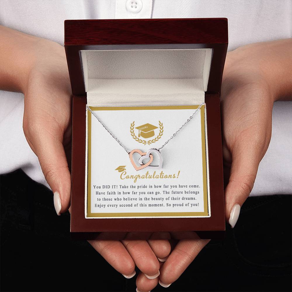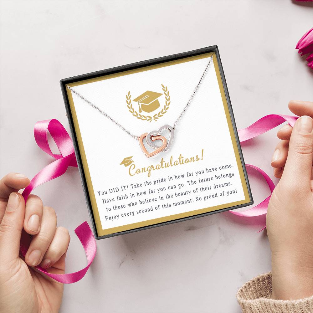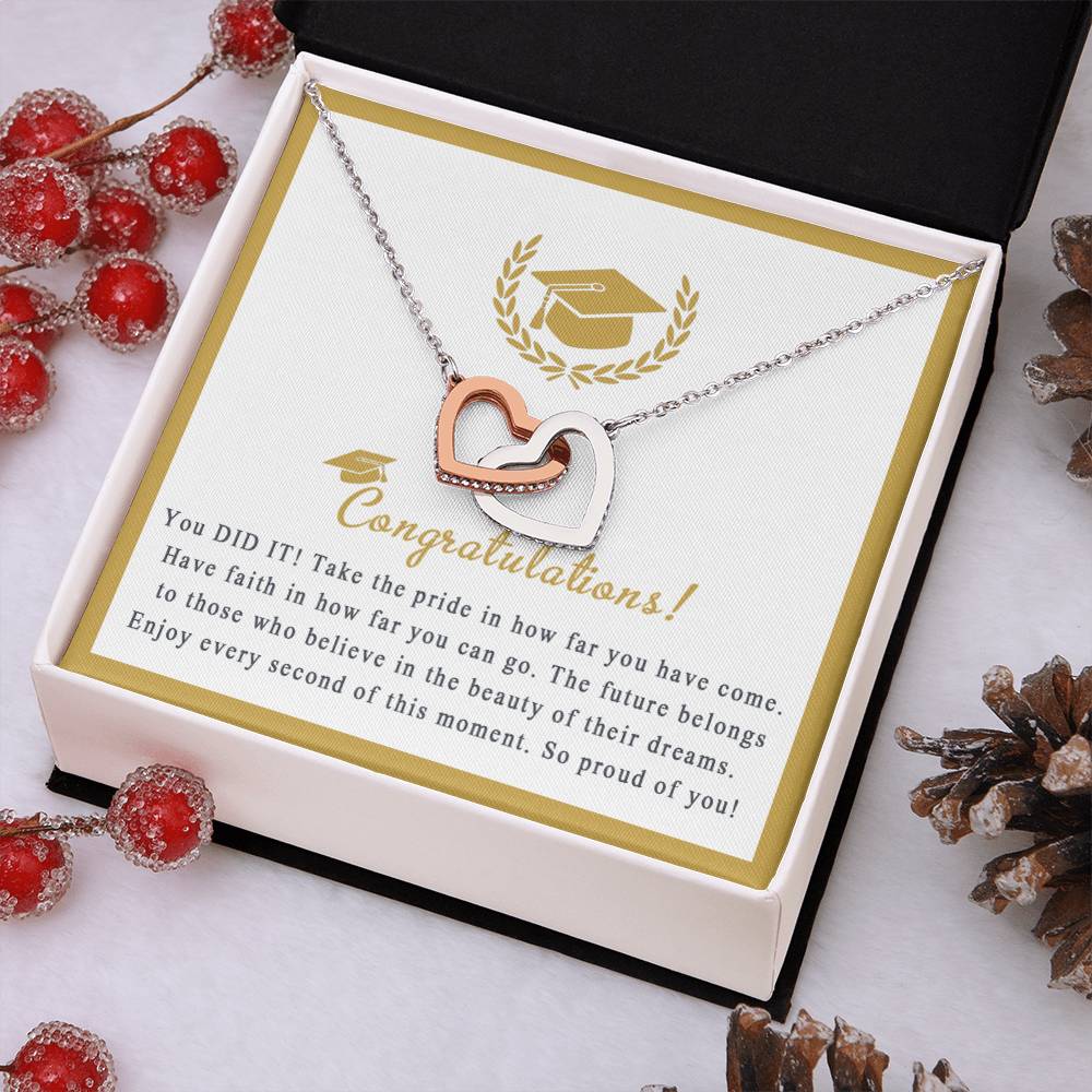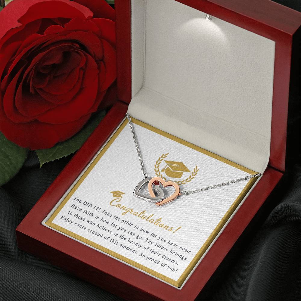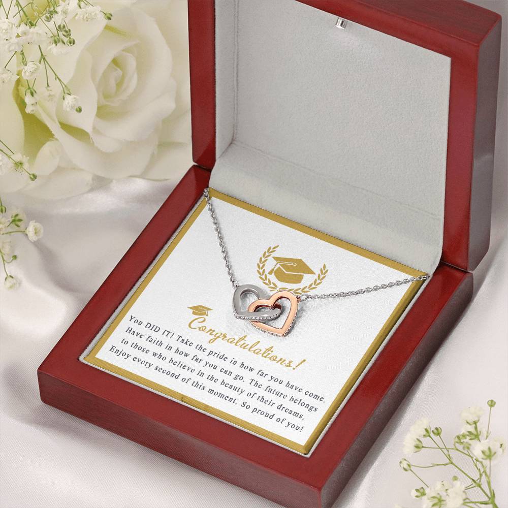 Give her the gift that symbolizes your never-ending love. Featuring two lovely hearts embellished with cubic zirconia crystals, this Interlocking Hearts necklace is the perfect accessory for everyday wear. Whether it's a memorable anniversary or a special birthday, make sure to dazzle your special someone by gifting them this stunning necklace.