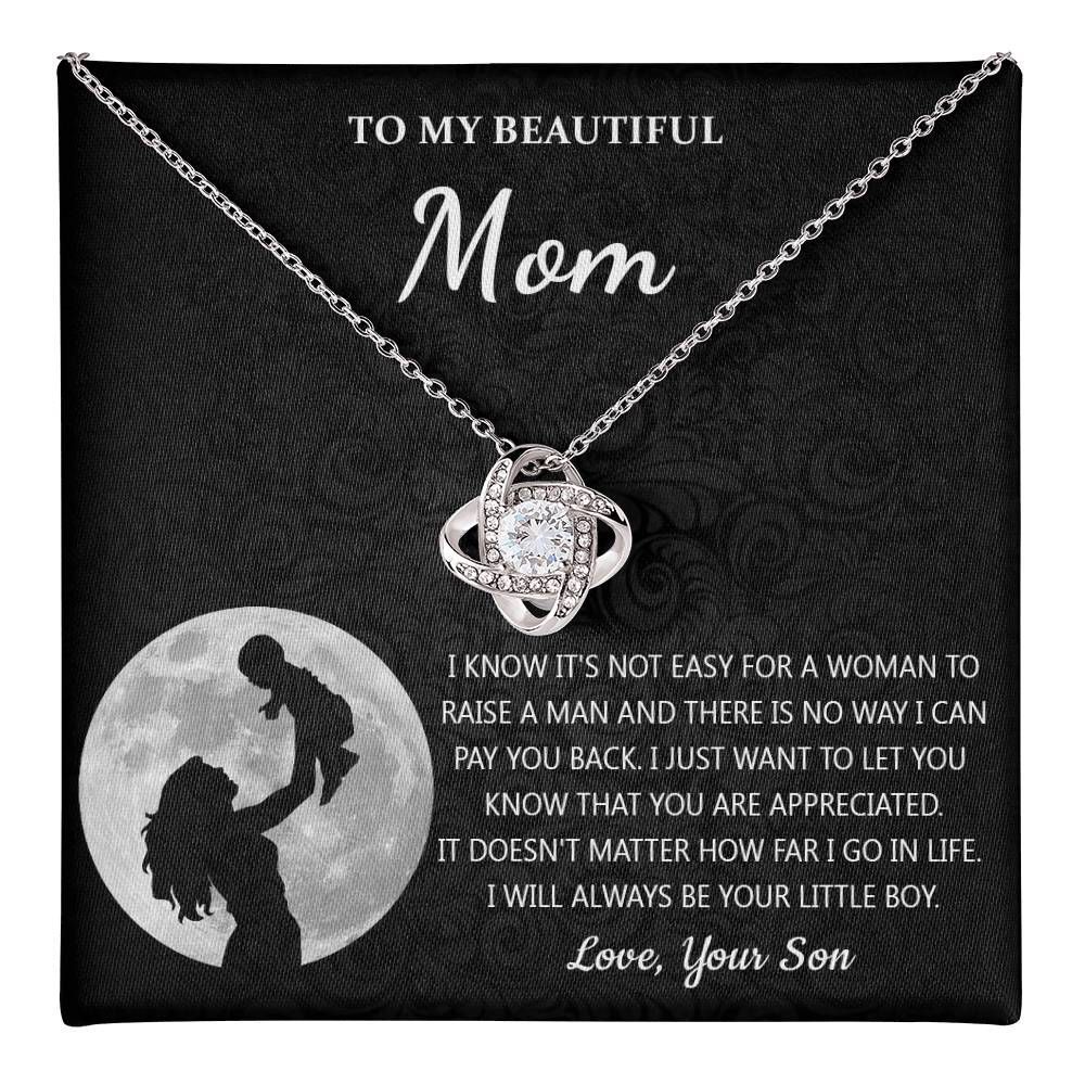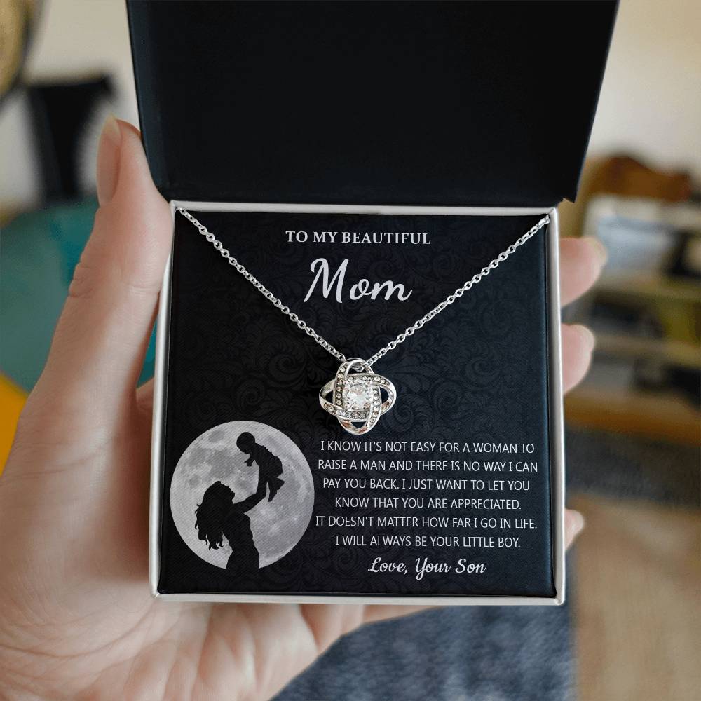 Imagine her reaction receiving this beautiful Love Knot Necklace. Representing an unbreakable bond between two souls, this piece features a beautiful pendant embellished with premium cubic zirconia crystals. Surprise your loved one with this gorgeous gift today!