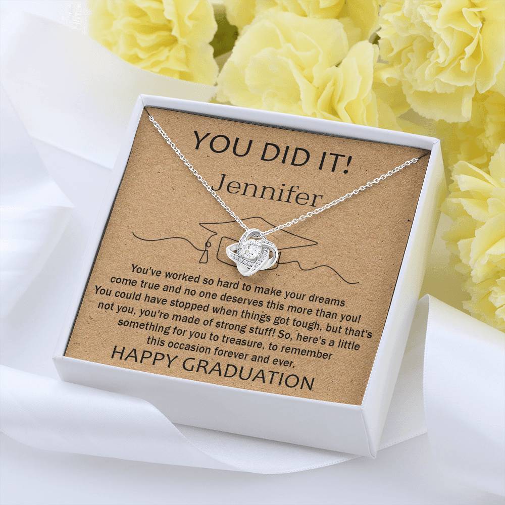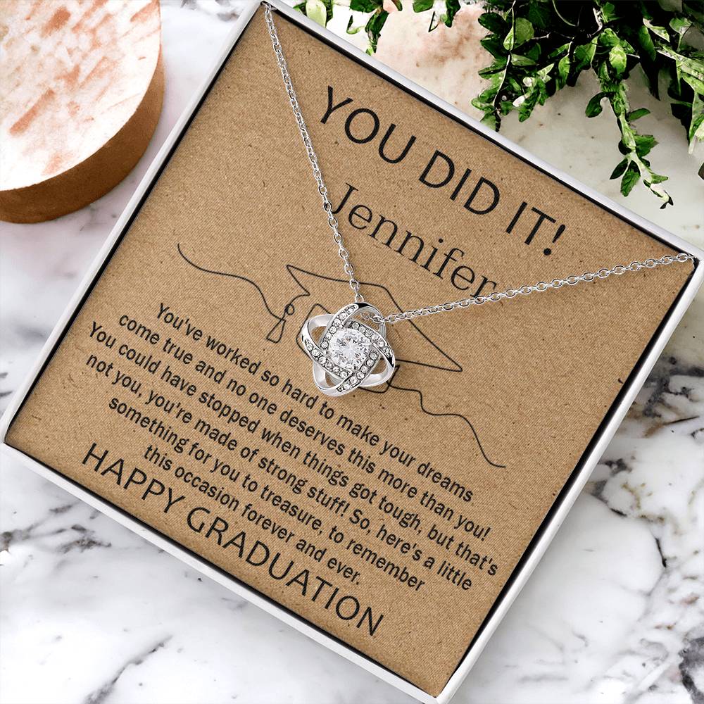 Imagine her reaction receiving this beautiful Love Knot Necklace. Representing an unbreakable bond between two souls, this piece features a beautiful pendant embellished with premium cubic zirconia crystals. Surprise your loved one with this gorgeous gift today!