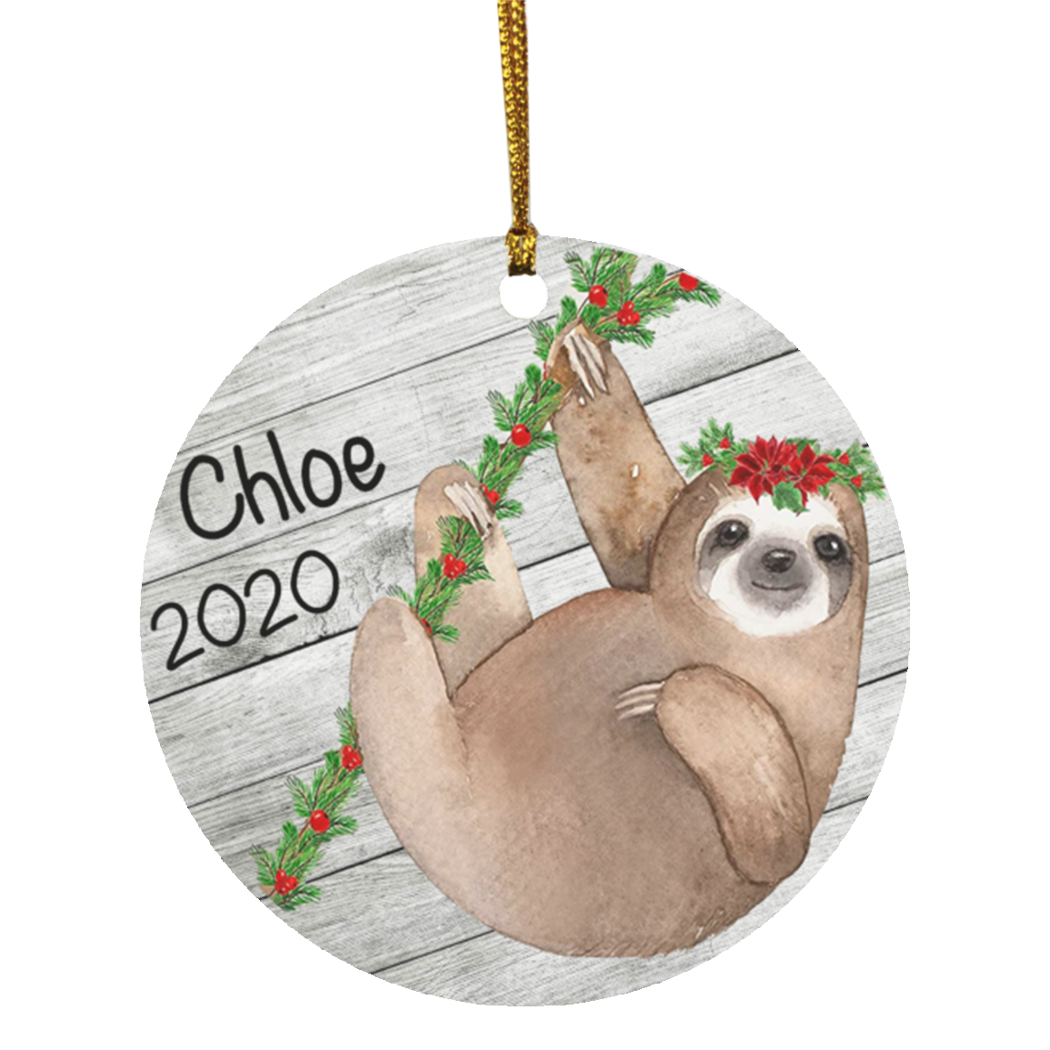 Holiday Sloth Personalized Ornament - MDF - Porcelain - Holiday Ornament - Christmas - Name Year - Custom Ornament - Sloth Ornament SUBORNC Circle Ornament