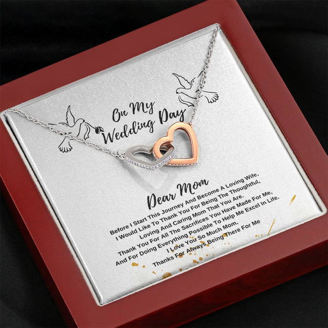 Two hearts embellished with Cubic Zirconia stones, interlocked together as a symbol of never-ending love. Made with high quality polished surgical steel. Cable chain measures 18 inches with a 4 inch extension, and fastens with a lobster clasp.