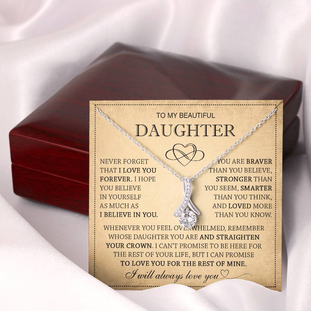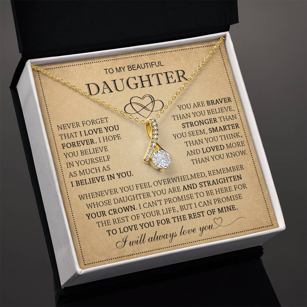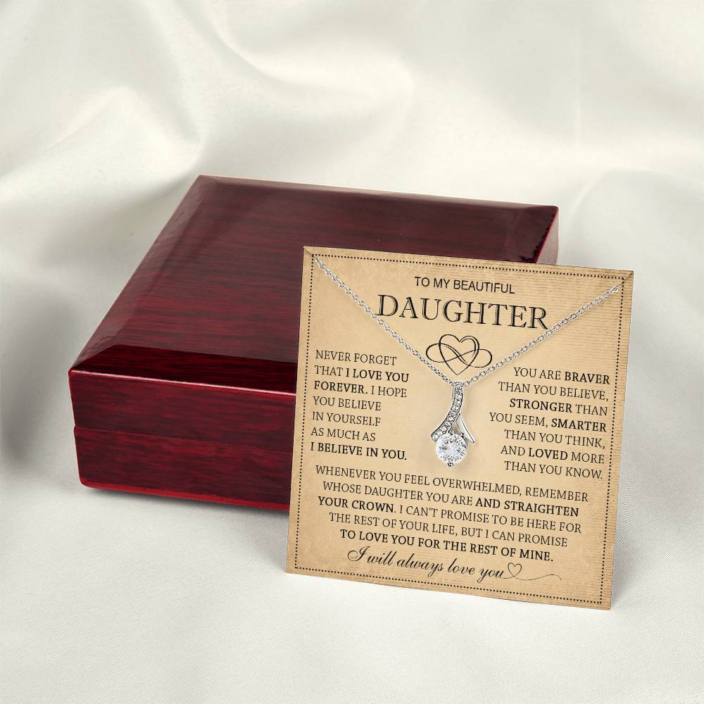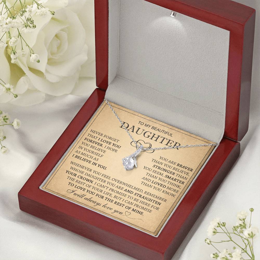 Imagine her reaction when she opens this stunning gift! The Alluring Beauty necklace features a petite ribbon shaped pendant that is sure to dazzle your special someone. Whether it's a birthday or anniversary, make sure to get her a gift she will love for years to come.
