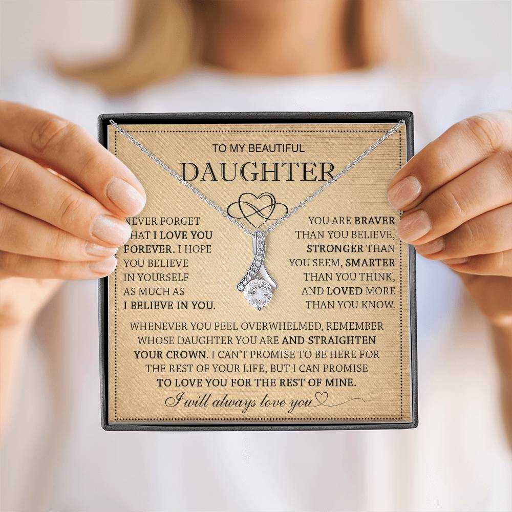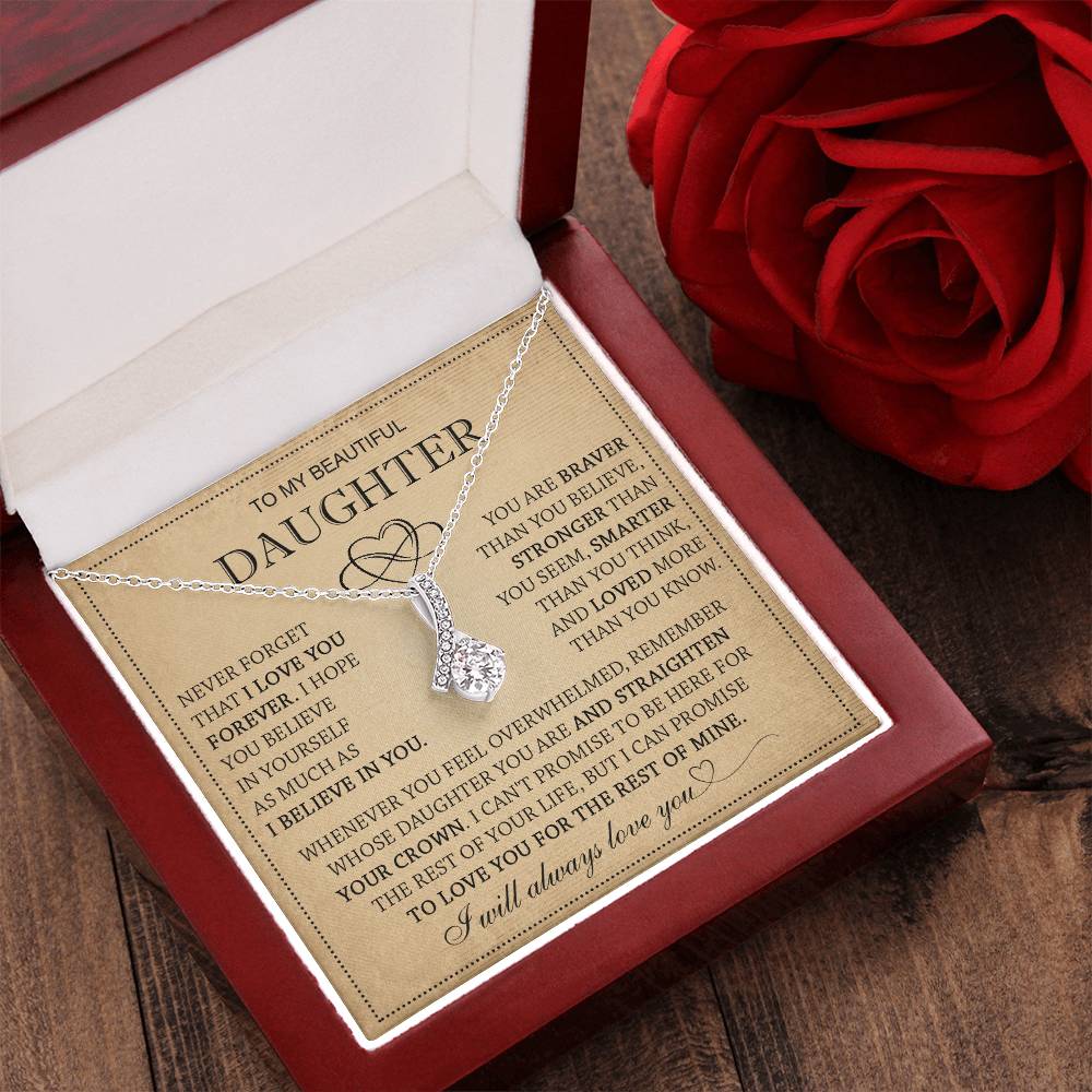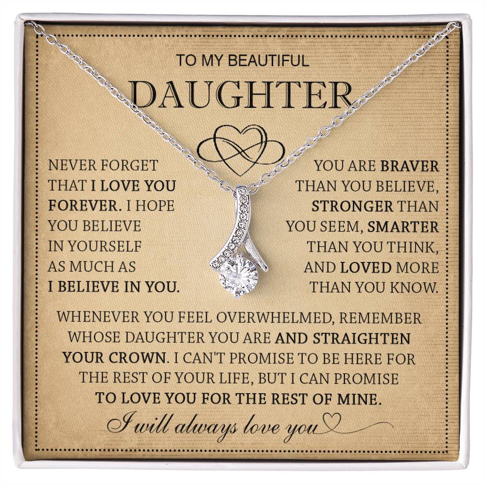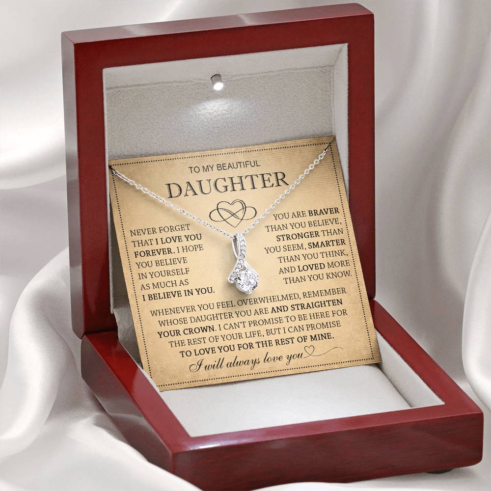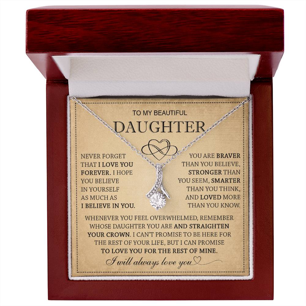 Imagine her reaction when she opens this stunning gift! The Alluring Beauty necklace features a petite ribbon shaped pendant that is sure to dazzle your special someone. Whether it's a birthday or anniversary, make sure to get her a gift she will love for years to come.