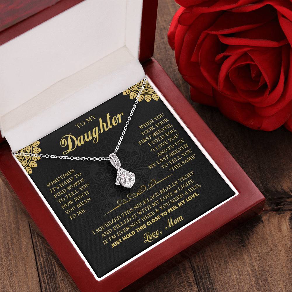 Imagine her reaction when she opens this stunning gift! The Alluring Beauty necklace features a petite ribbon shaped pendant that is sure to dazzle your special someone. Whether it's a birthday or anniversary, make sure to get her a gift she will love for years to come.