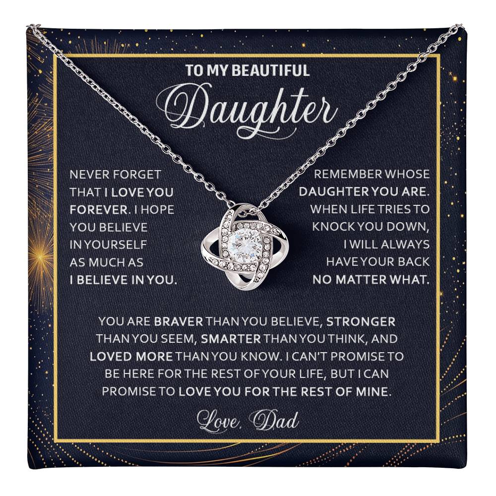 Imagine her reaction receiving this beautiful Love Knot Necklace. Representing an unbreakable bond between two souls, this piece features a beautiful pendant embellished with premium cubic zirconia crystals. Surprise your loved one with this gorgeous gift today!