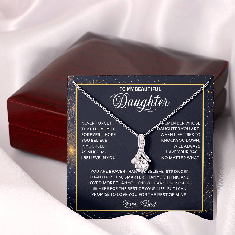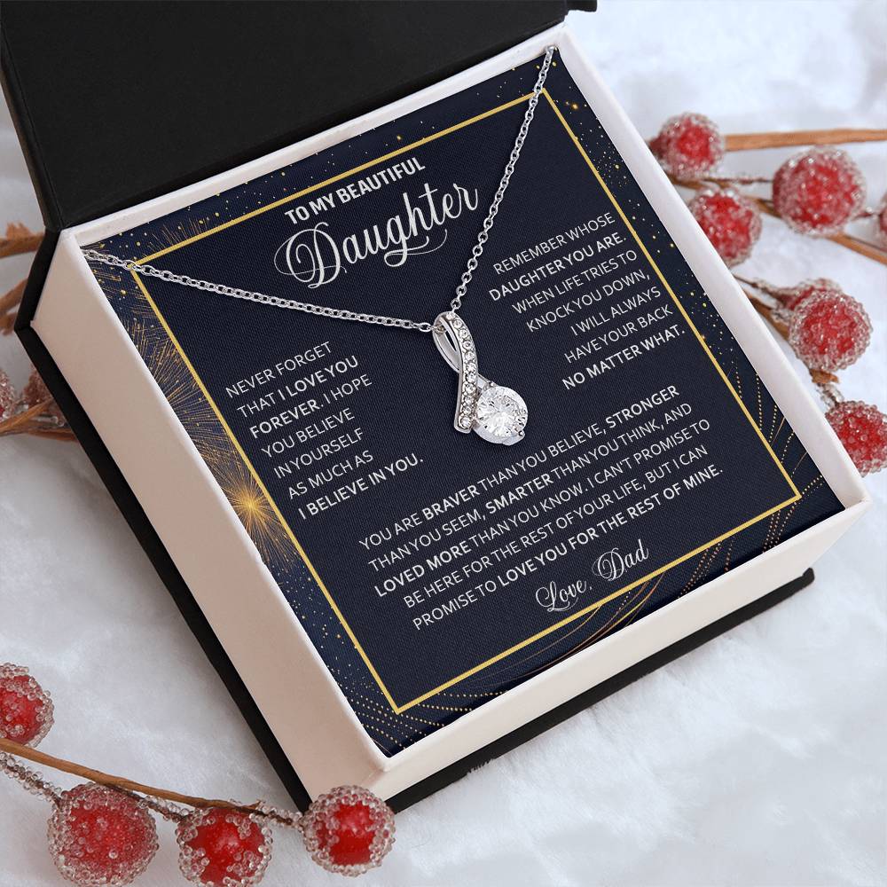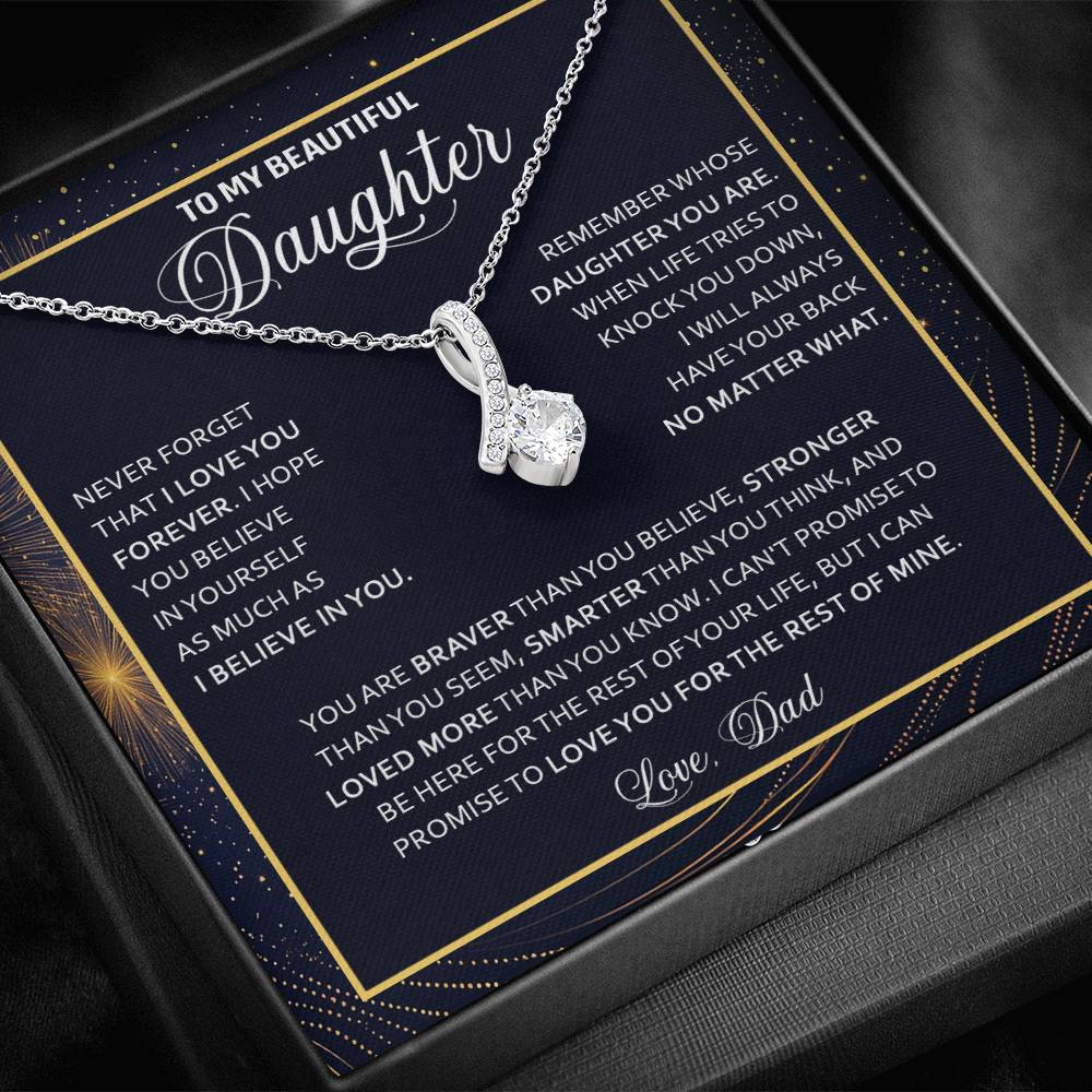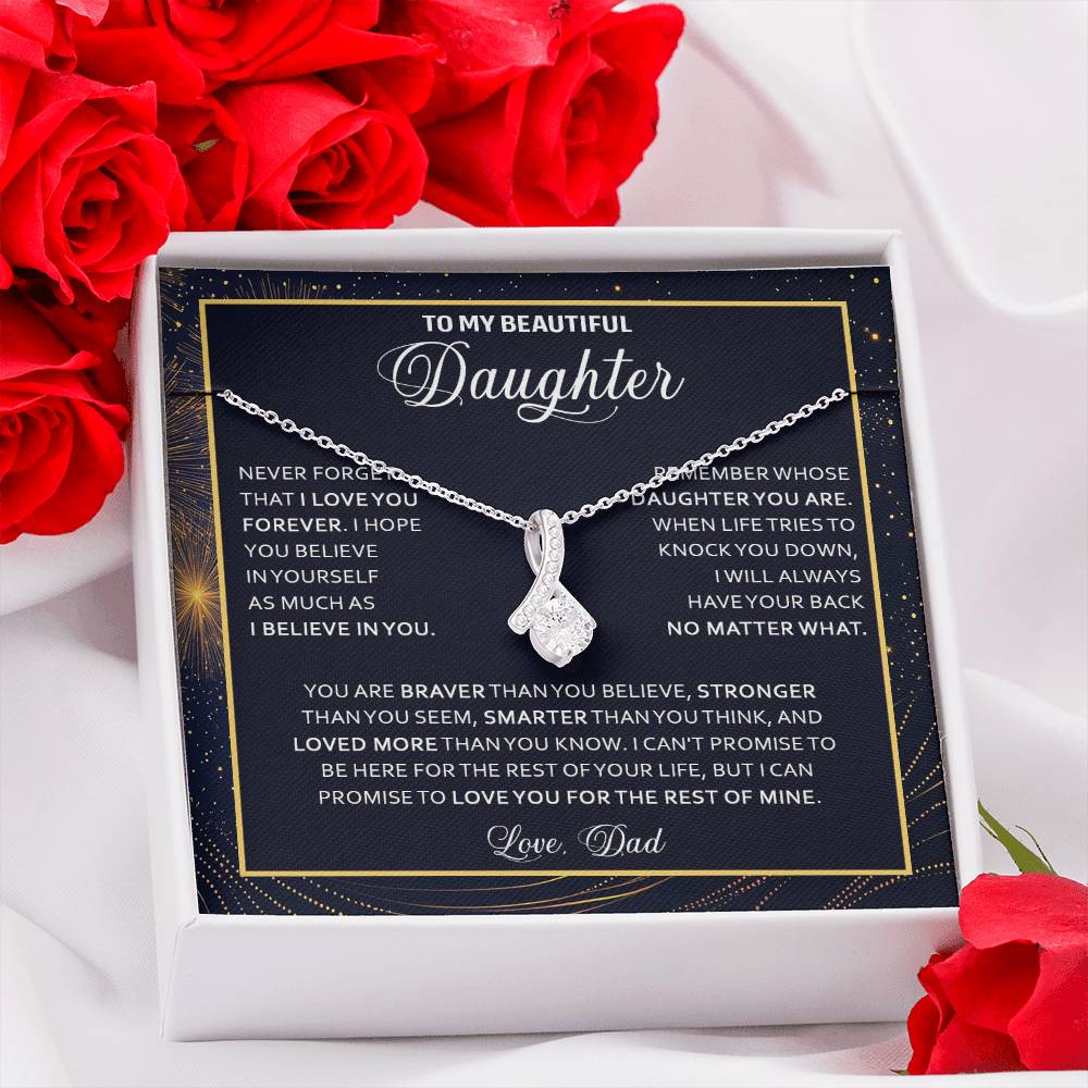 Imagine her reaction when she opens this stunning gift! The Alluring Beauty necklace features a petite ribbon shaped pendant that is sure to dazzle your special someone. Whether it's a birthday or anniversary, make sure to get her a gift she will love for years to come.