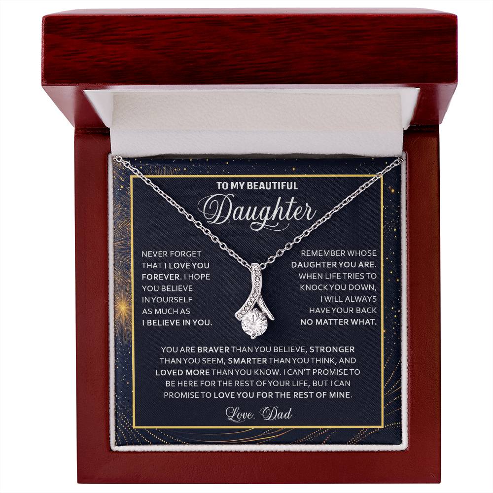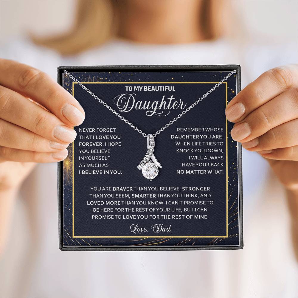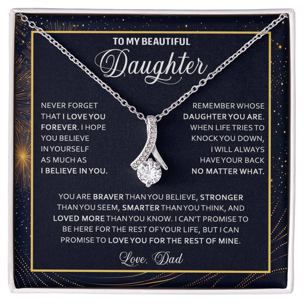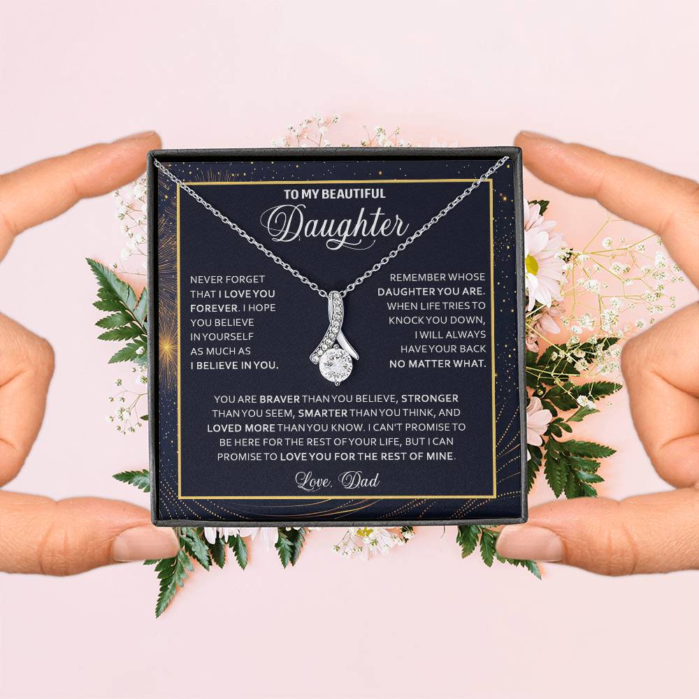 Imagine her reaction when she opens this stunning gift! The Alluring Beauty necklace features a petite ribbon shaped pendant that is sure to dazzle your special someone. Whether it's a birthday or anniversary, make sure to get her a gift she will love for years to come.
