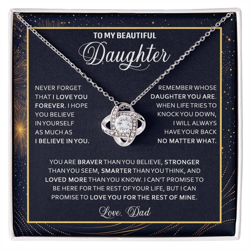 Imagine her reaction receiving this beautiful Love Knot Necklace. Representing an unbreakable bond between two souls, this piece features a beautiful pendant embellished with premium cubic zirconia crystals. Surprise your loved one with this gorgeous gift today!