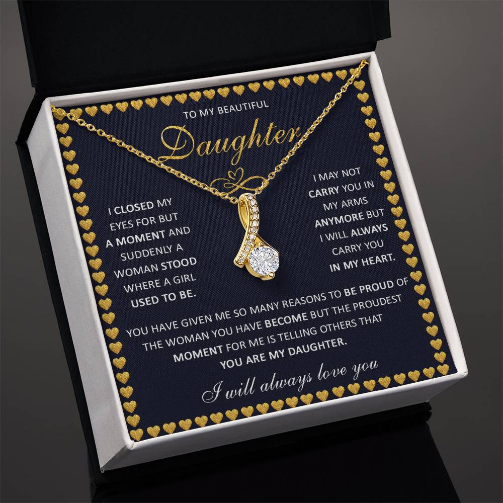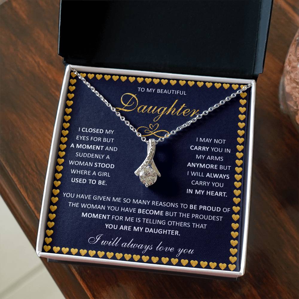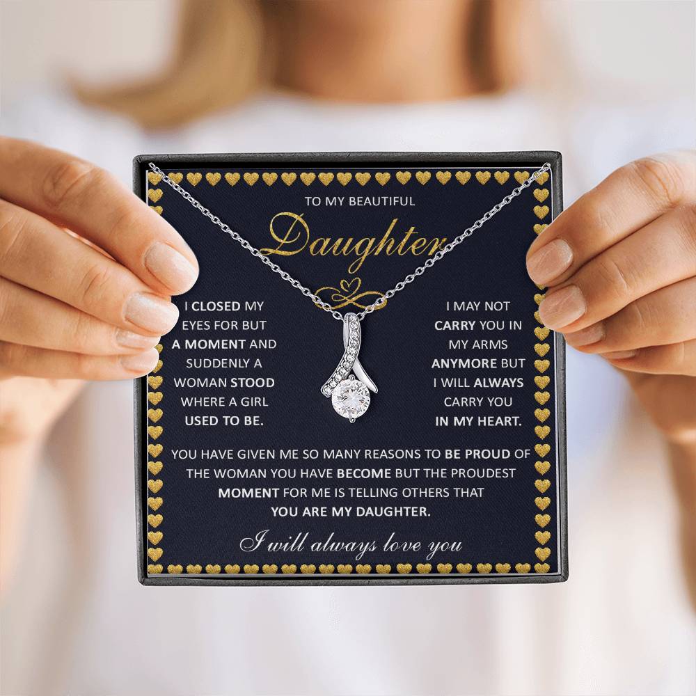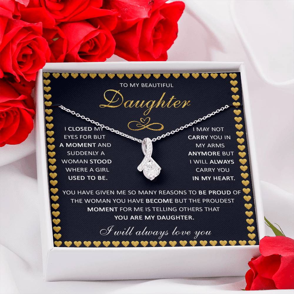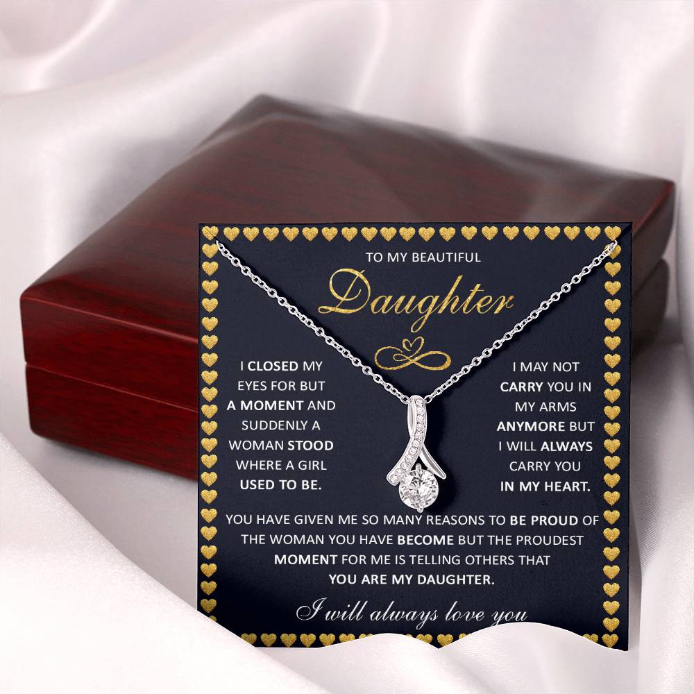 Imagine her reaction when she opens this stunning gift! The Alluring Beauty necklace features a petite ribbon shaped pendant that is sure to dazzle your special someone. Whether it's a birthday or anniversary, make sure to get her a gift she will love for years to come.