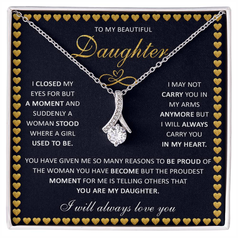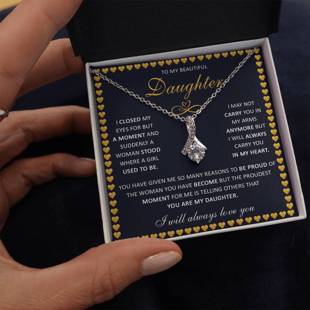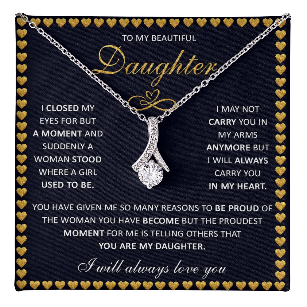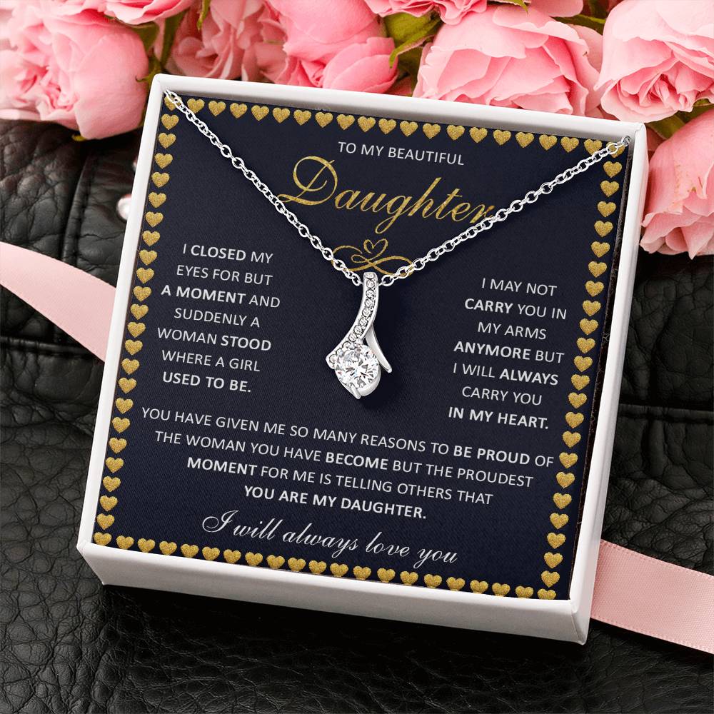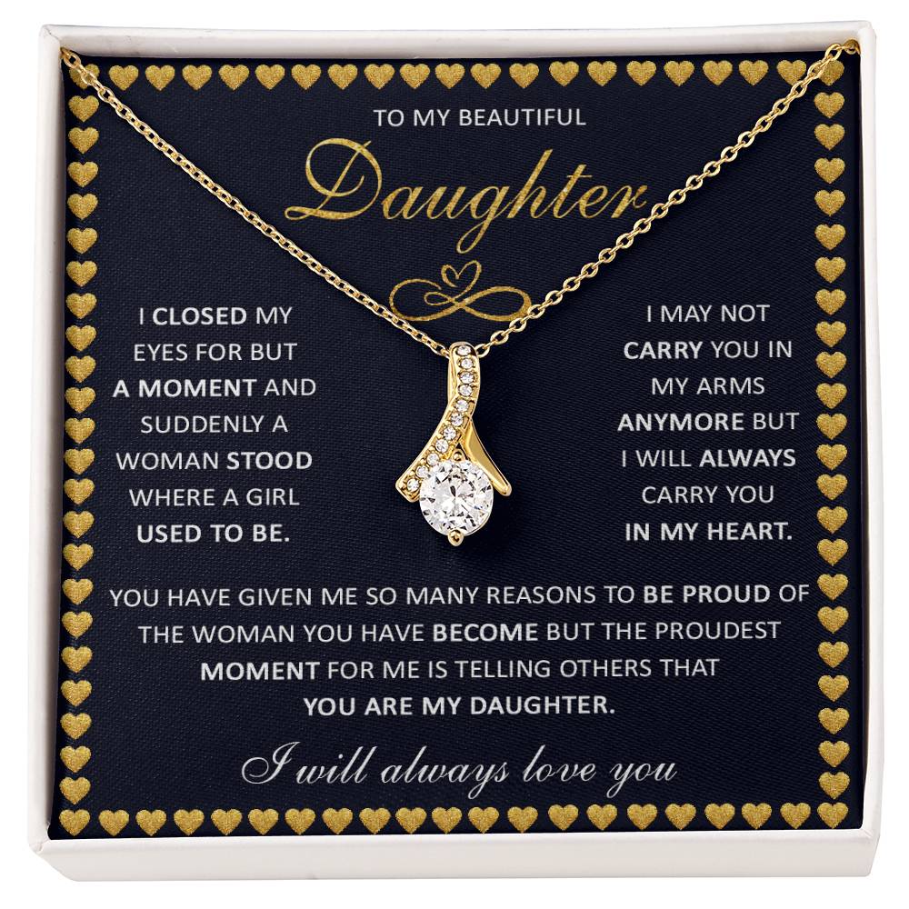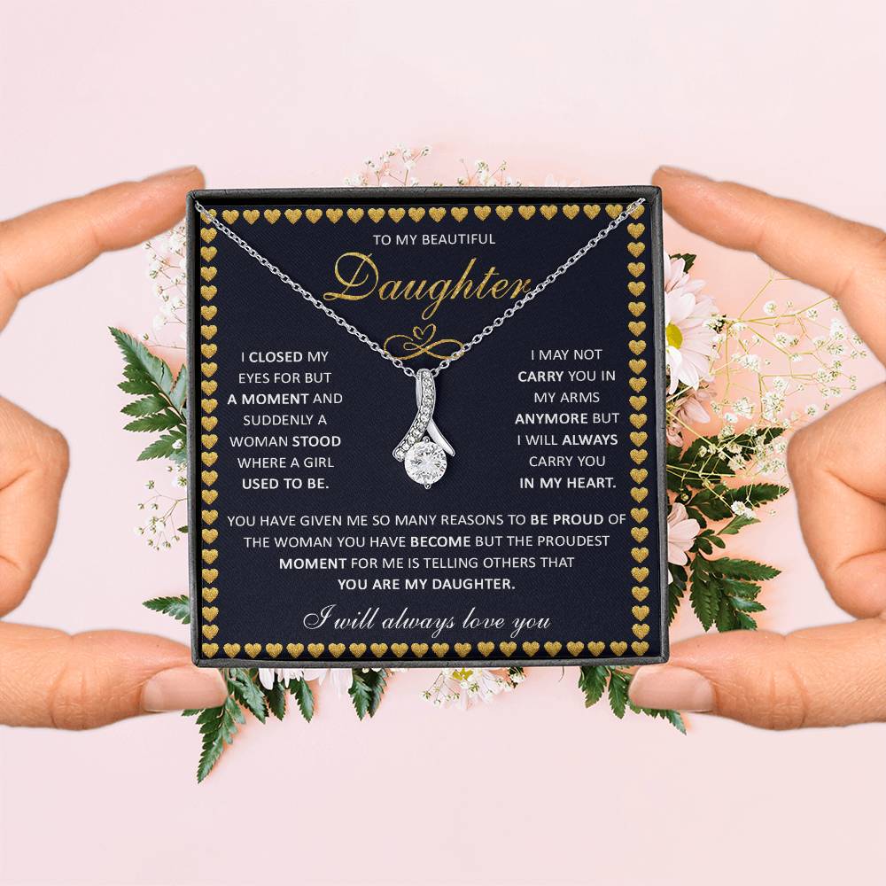 Imagine her reaction when she opens this stunning gift! The Alluring Beauty necklace features a petite ribbon shaped pendant that is sure to dazzle your special someone. Whether it's a birthday or anniversary, make sure to get her a gift she will love for years to come.