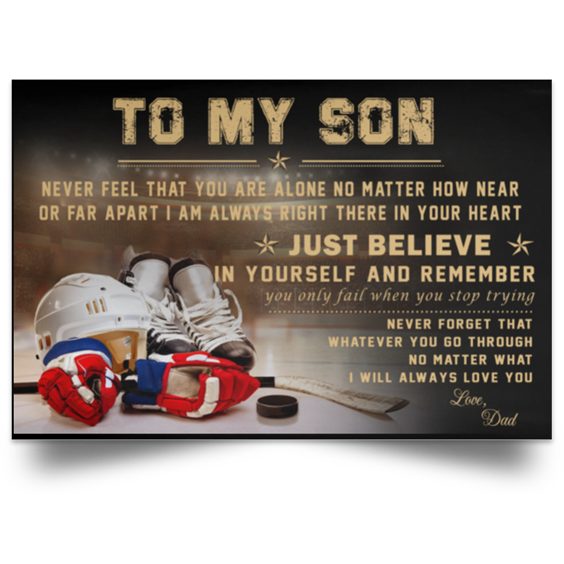 Lhd Hockey Poster - to My Son - Just Believe Family Friend Gift Unisex, Awesome Birthday Perfect Happy Birthd (1) POSLA Satin Landscape Poster