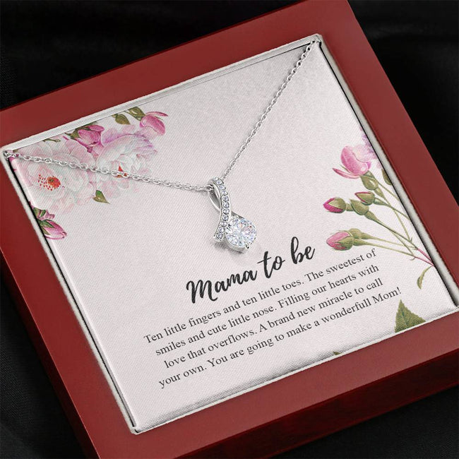 Melt her heart with this ALLURING BEAUTY necklace gift! The petite ribbon shaped pendant is finished with 14K white gold over stainless steel, and is embellished with dainty clear crystals surrounded by a sparkling 7mm round cut Cubic Zirconia.