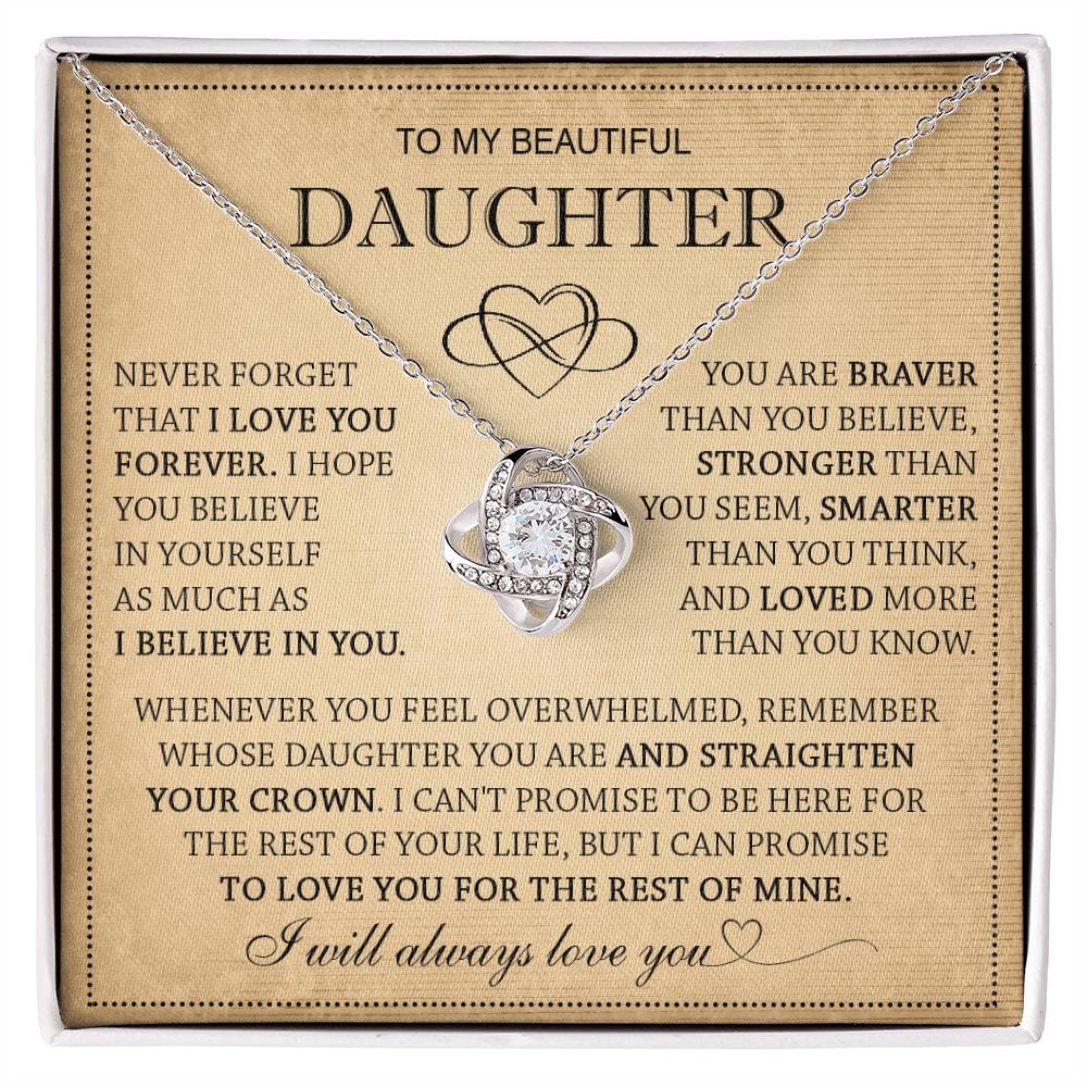Imagine her reaction receiving this beautiful Love Knot Necklace. Representing an unbreakable bond between two souls, this piece features a beautiful pendant embellished with premium cubic zirconia crystals. Surprise your loved one with this gorgeous gift today!