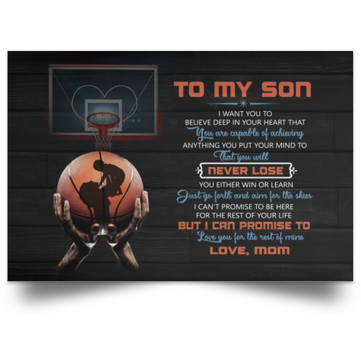 Meaningful Quote Wall Paintings to My Son I Want You Believe Deep in Your Heart Basketball from Mom Gift Family Unisex Awesome On Birthday, Decor Home Durable Print 32x48 POSLA Satin Landscape Poster