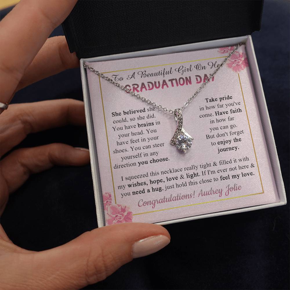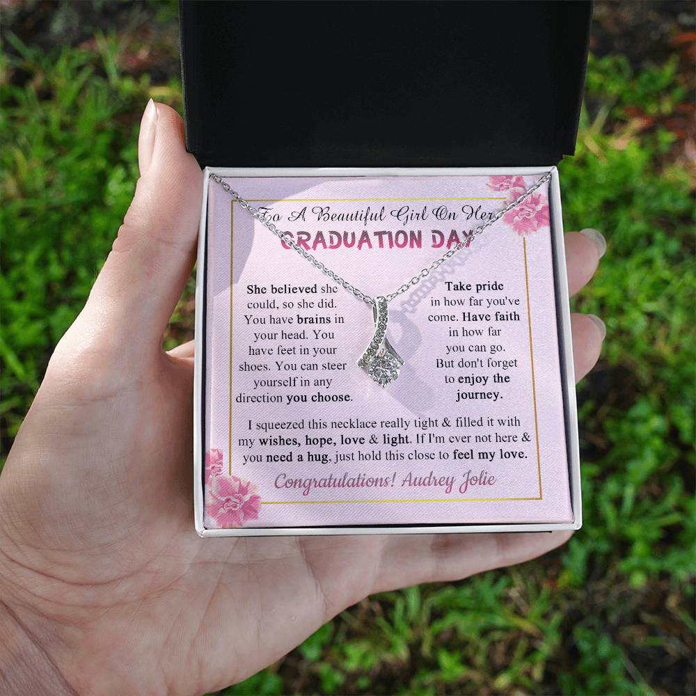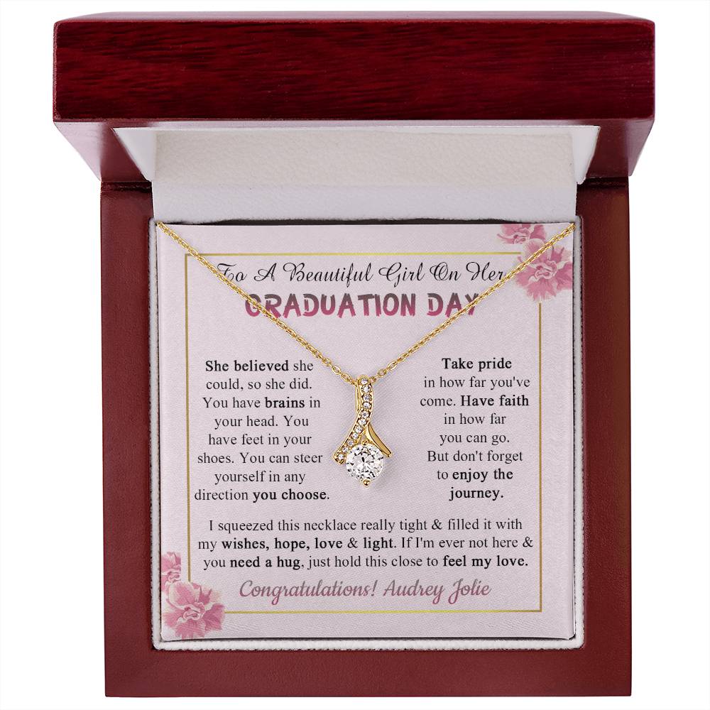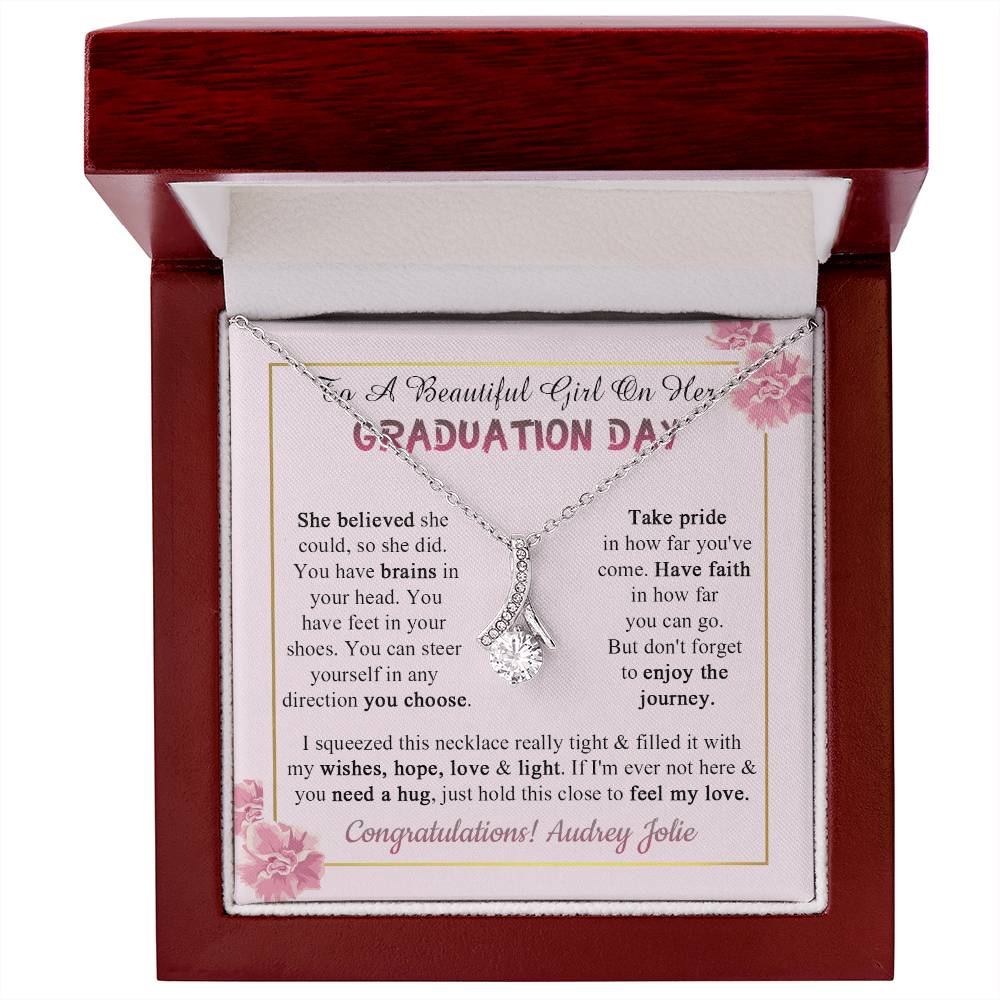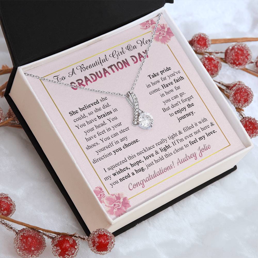 Imagine her reaction when she opens this stunning gift! The Alluring Beauty necklace features a petite ribbon shaped pendant that is sure to dazzle your special someone. Whether it's a birthday or anniversary, make sure to get her a gift she will love for years to come.