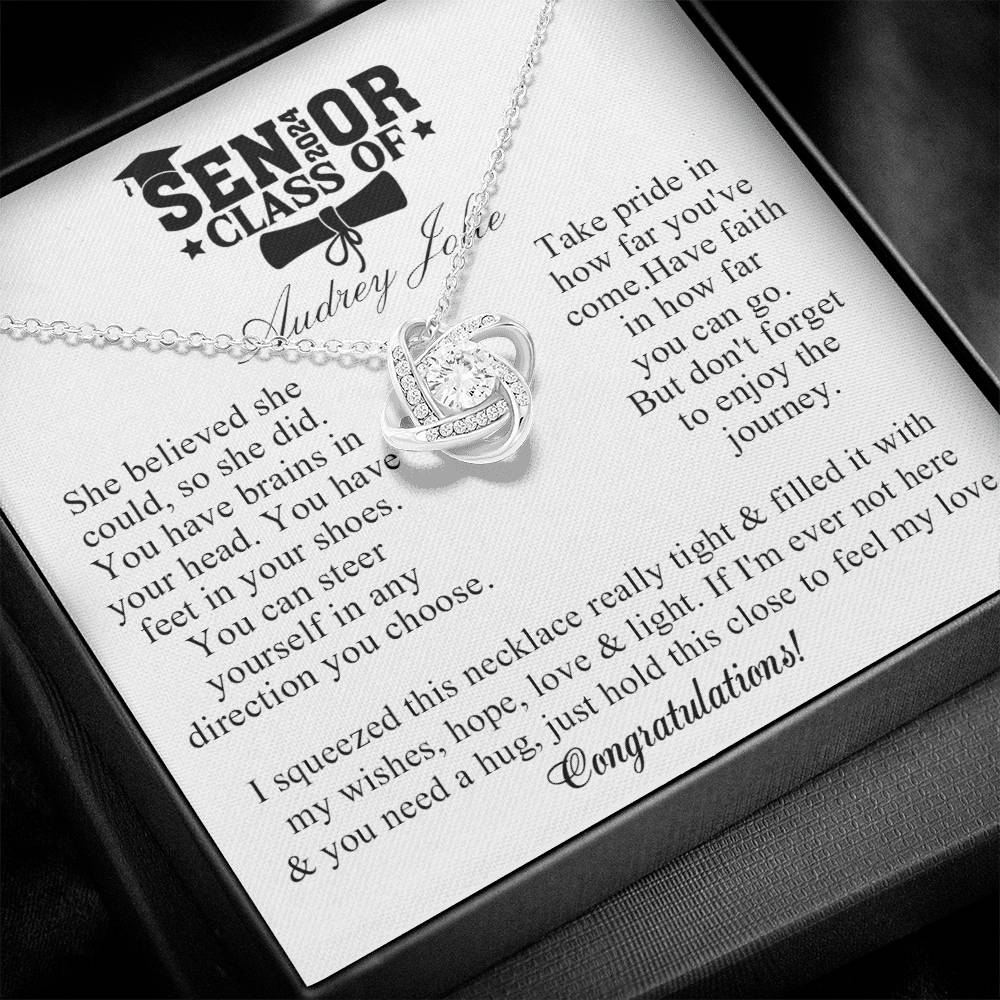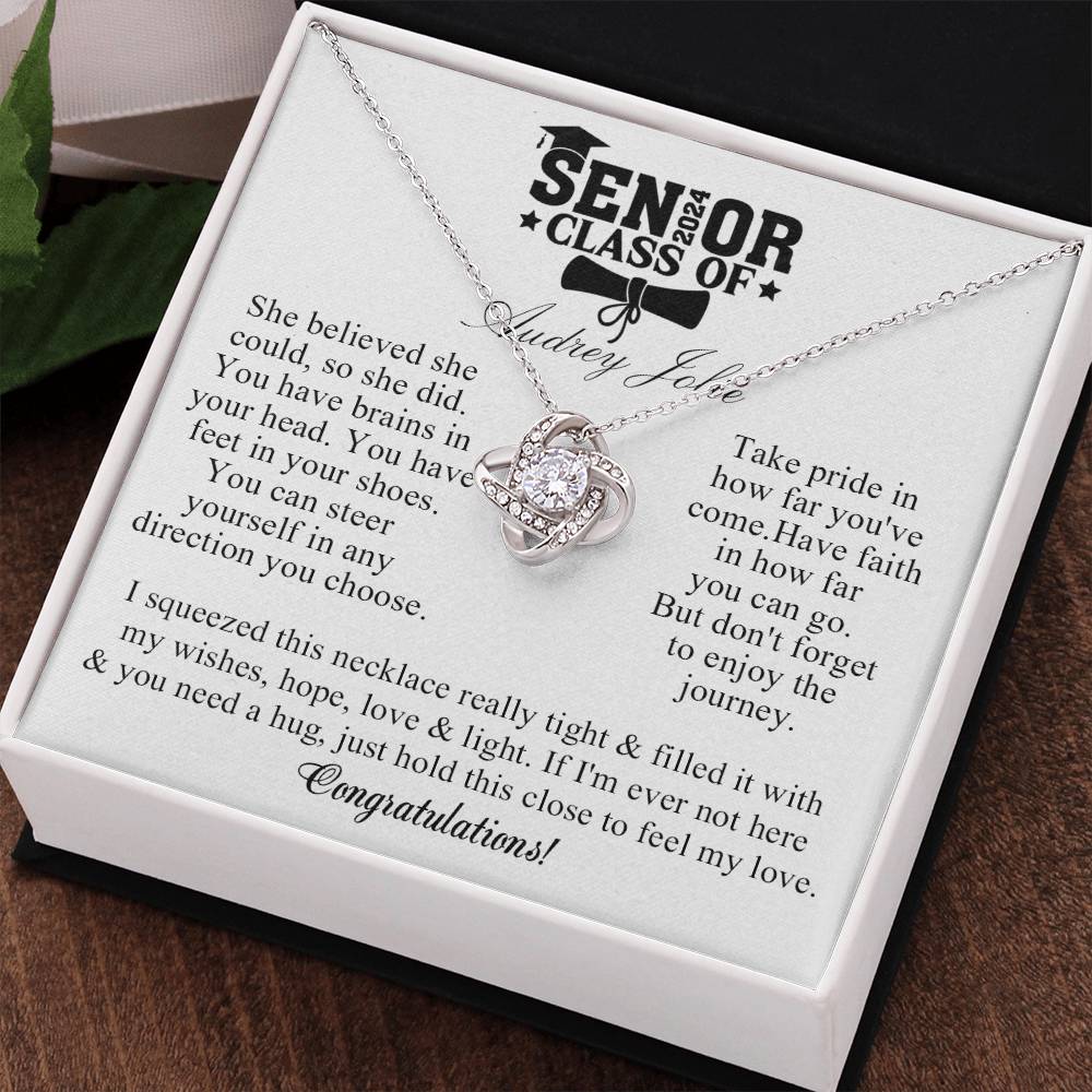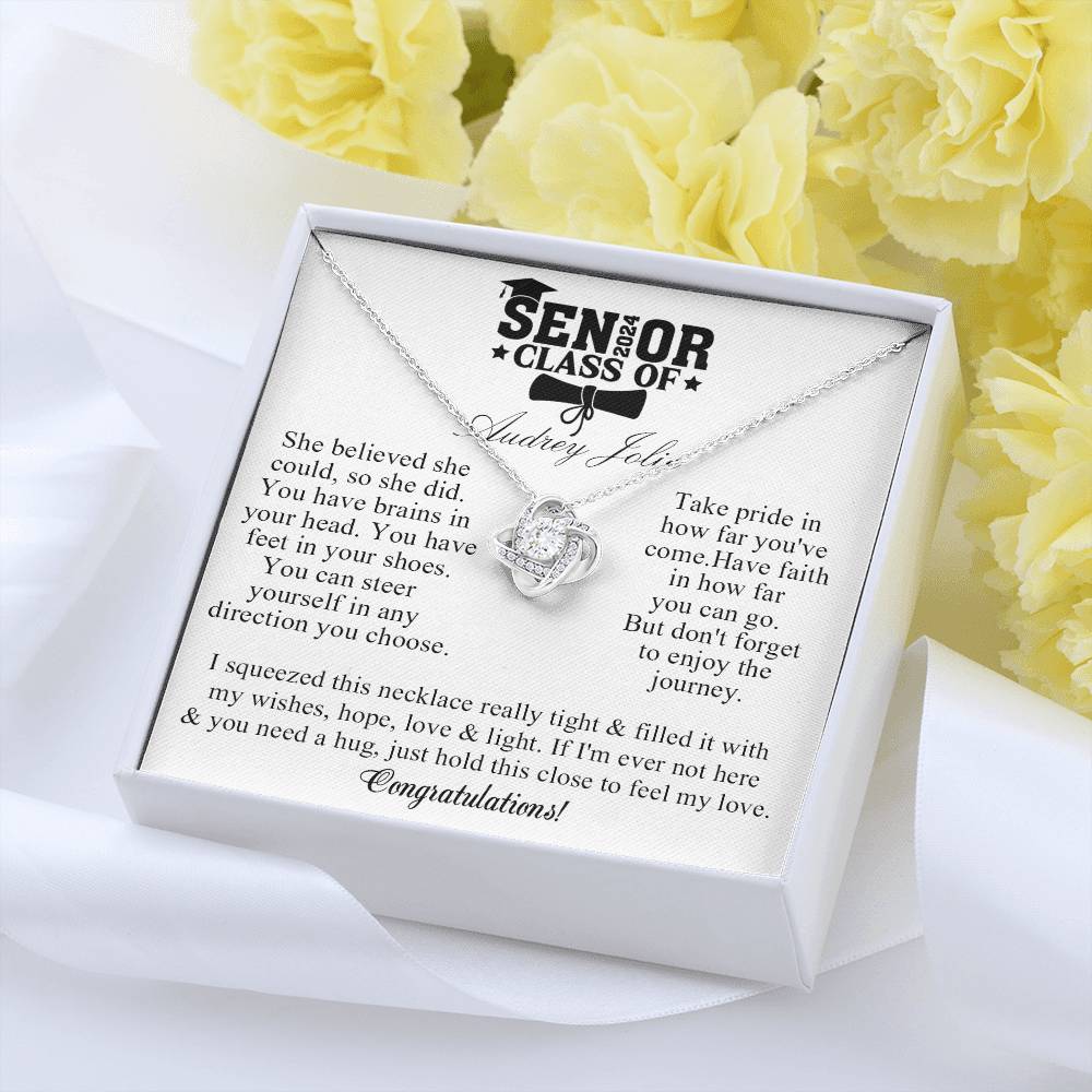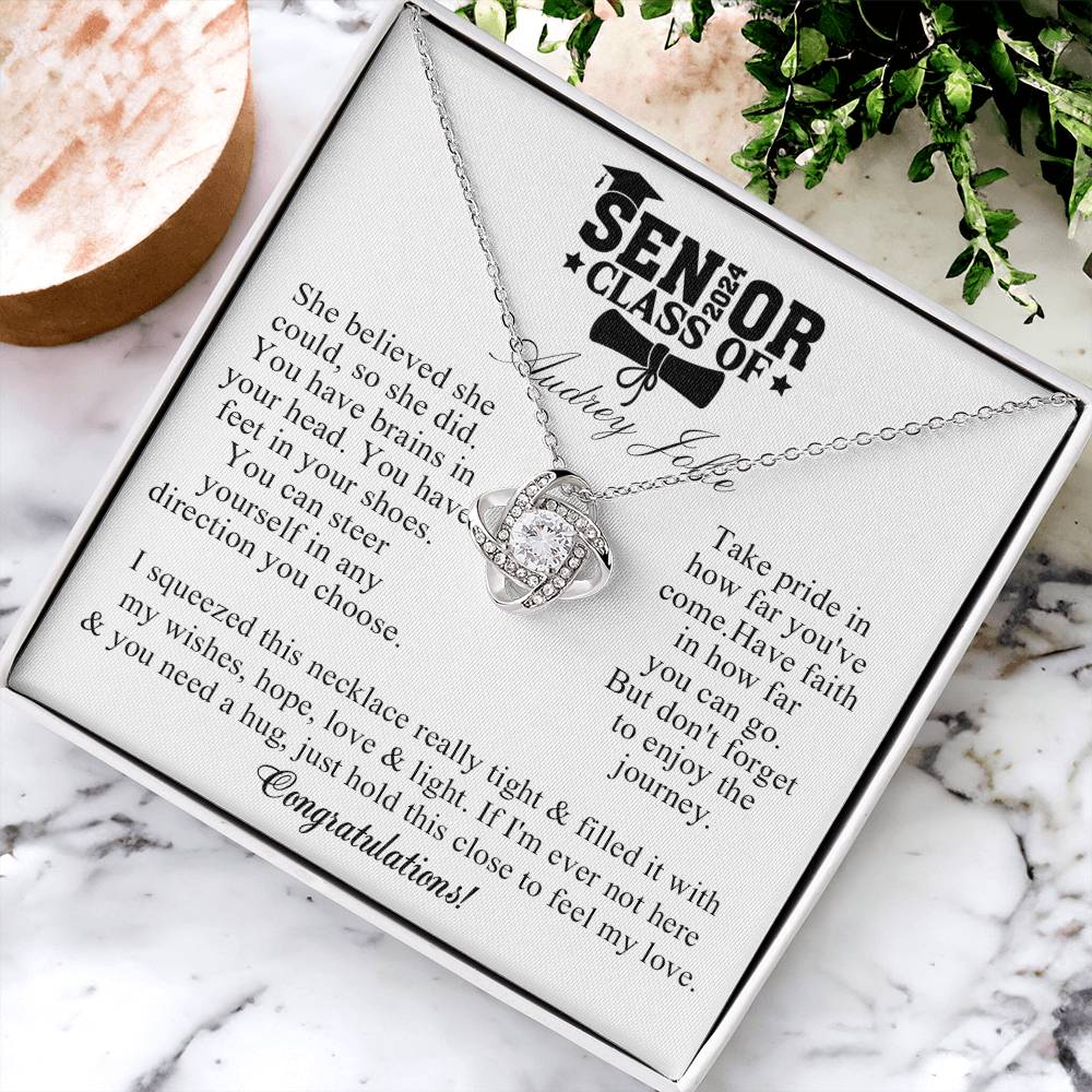 Imagine her reaction receiving this beautiful Love Knot Necklace. Representing an unbreakable bond between two souls, this piece features a beautiful pendant embellished with premium cubic zirconia crystals. Surprise your loved one with this gorgeous gift today!