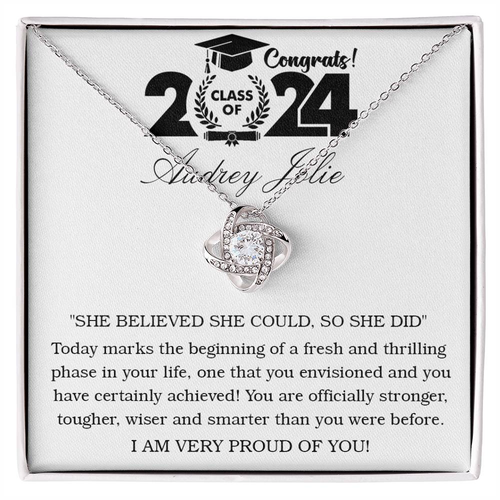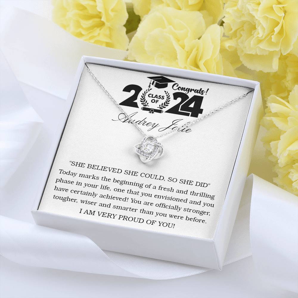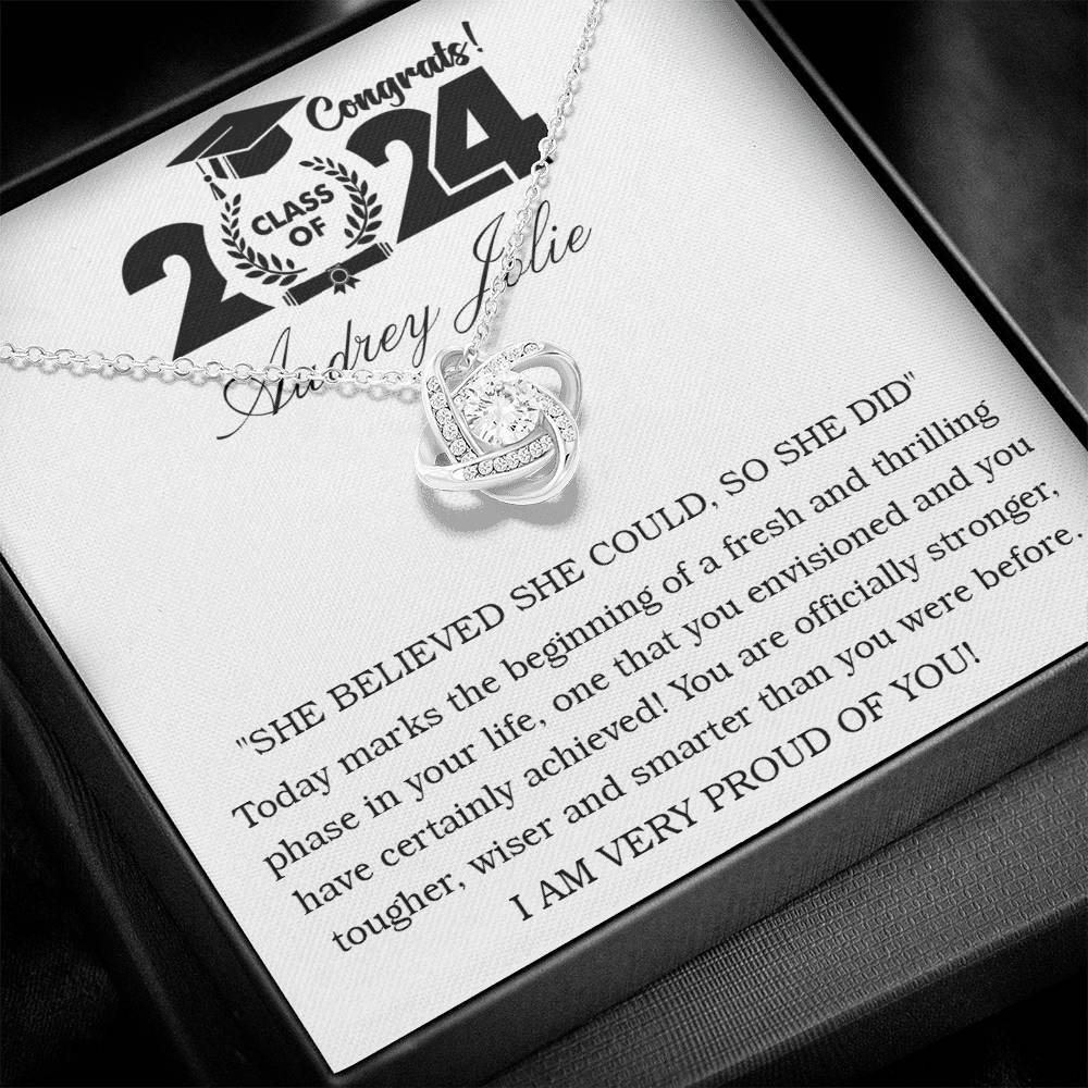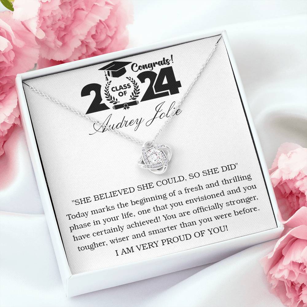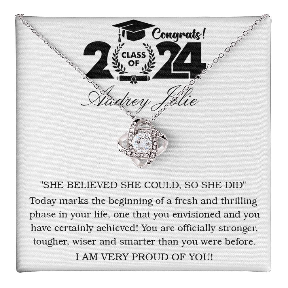 Imagine her reaction receiving this beautiful Love Knot Necklace. Representing an unbreakable bond between two souls, this piece features a beautiful pendant embellished with premium cubic zirconia crystals. Surprise your loved one with this gorgeous gift today!