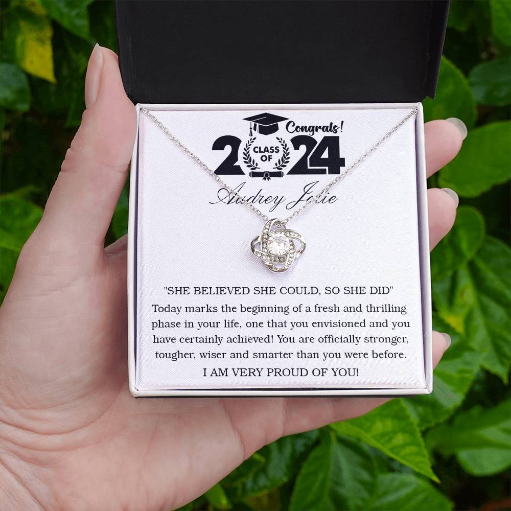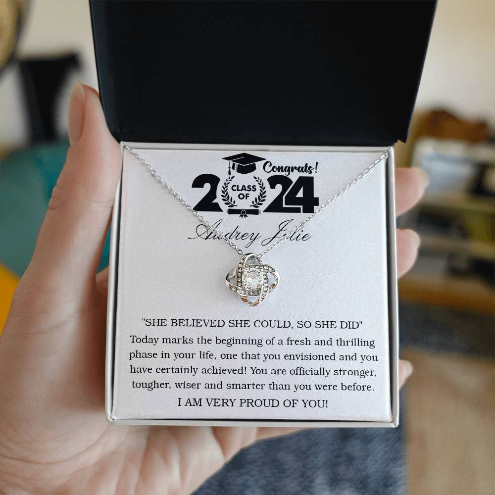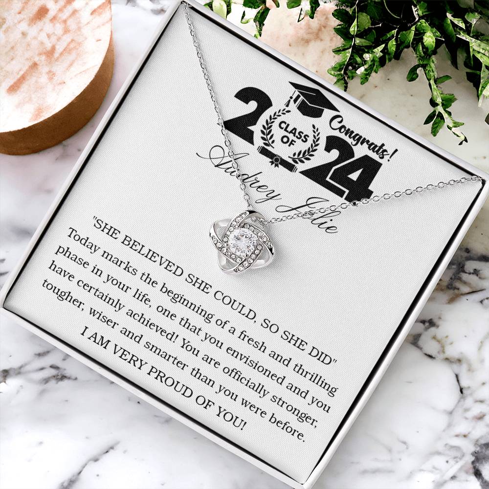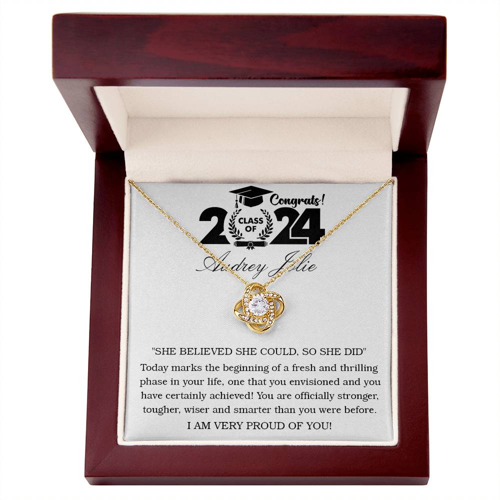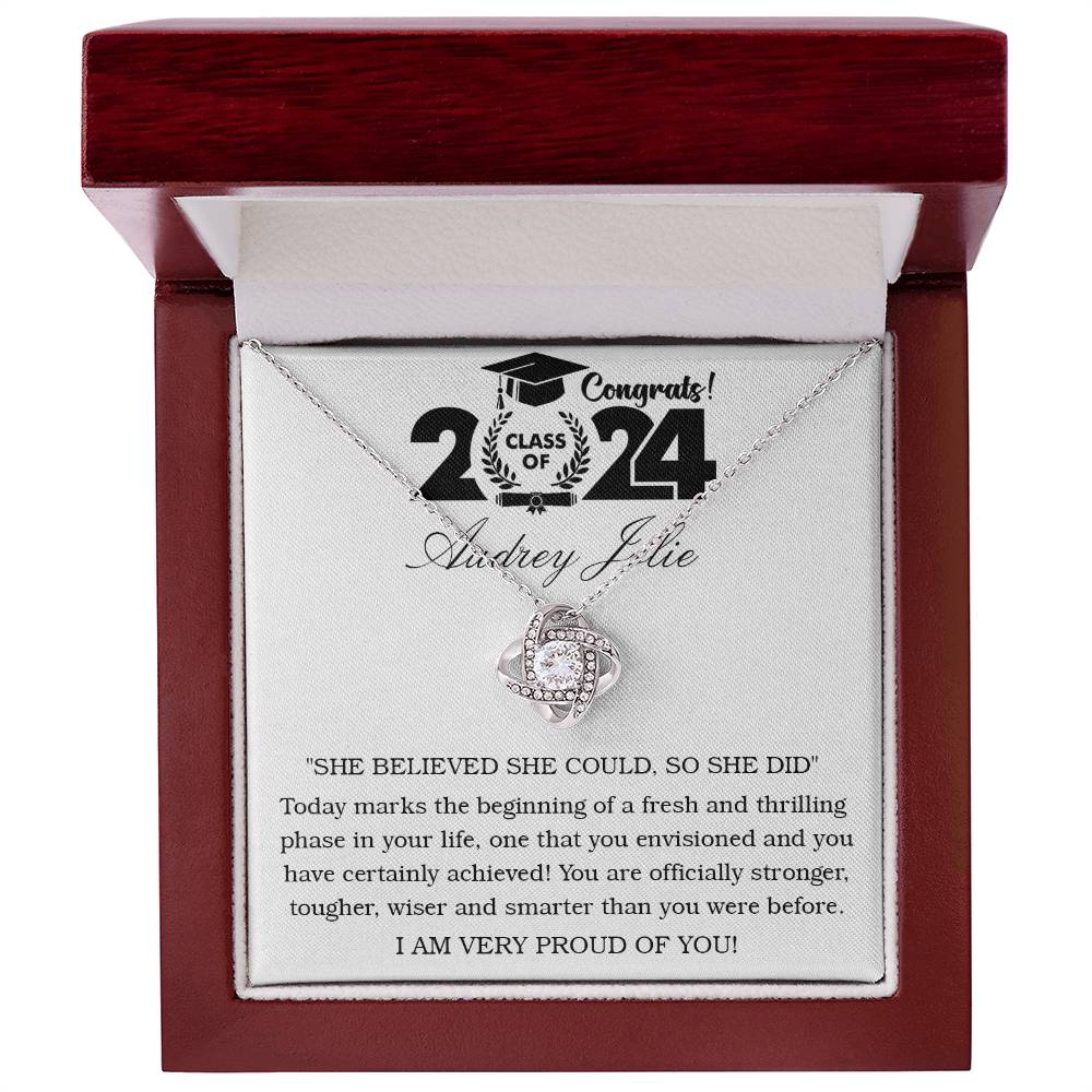 Imagine her reaction receiving this beautiful Love Knot Necklace. Representing an unbreakable bond between two souls, this piece features a beautiful pendant embellished with premium cubic zirconia crystals. Surprise your loved one with this gorgeous gift today!