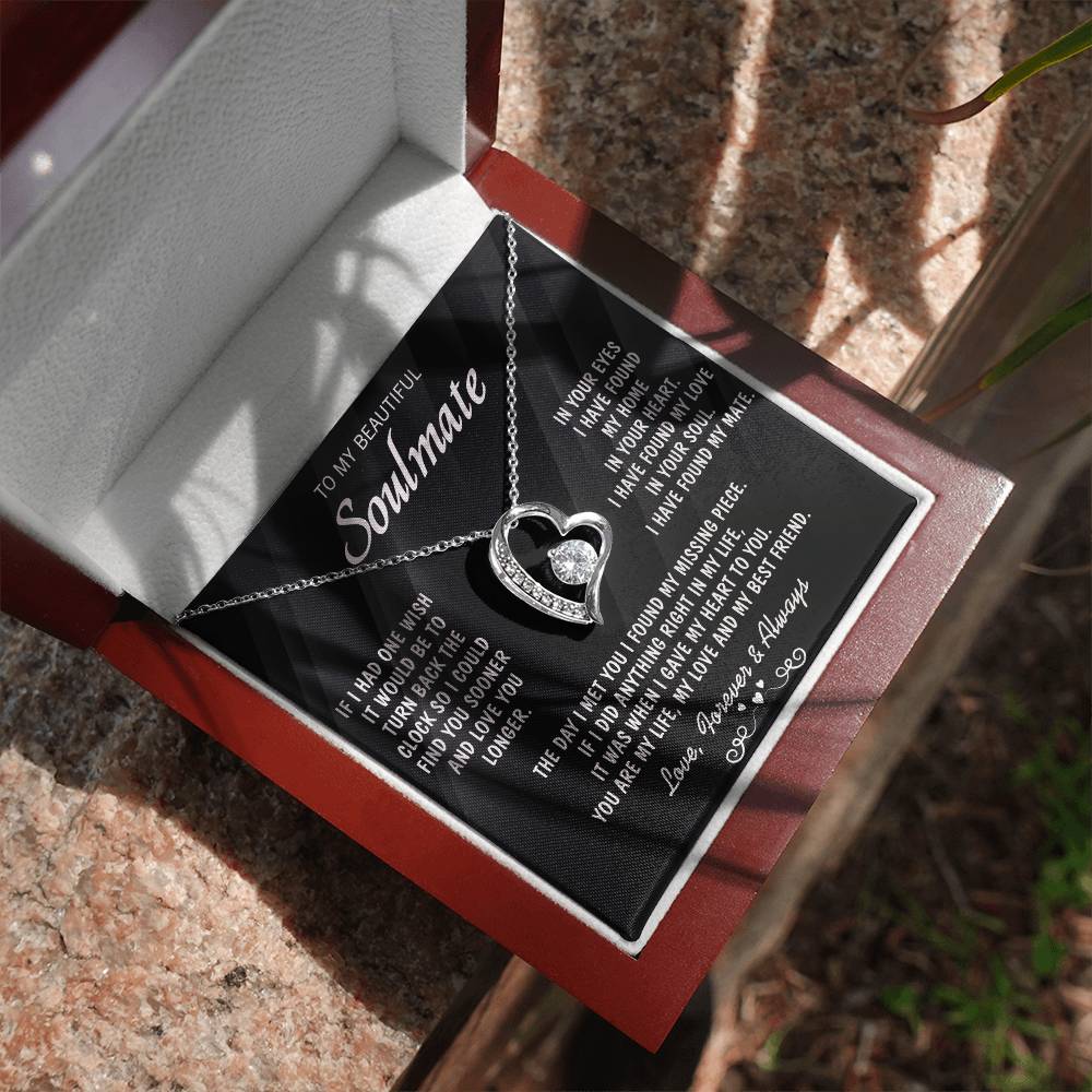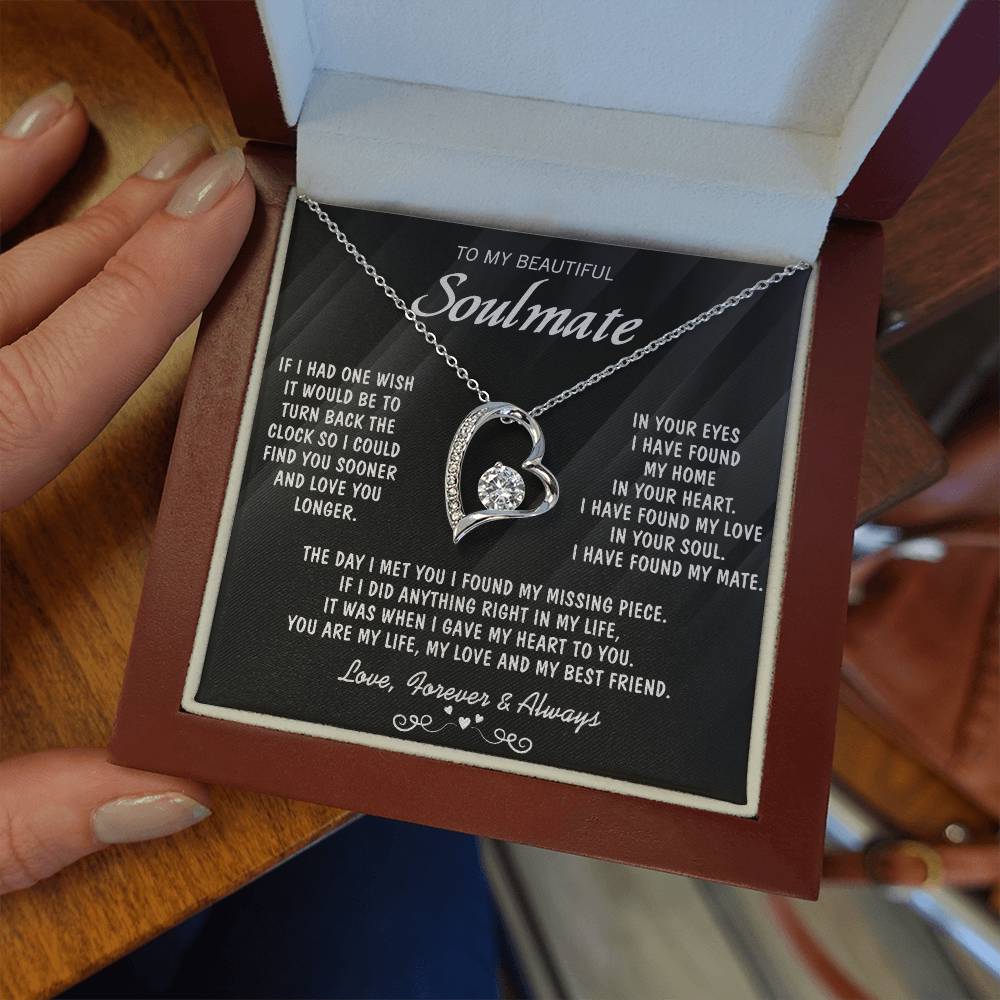 The dazzling Forever Love Necklace is sure to make her heart melt! This necklace features a stunning 6.5mm CZ crystal surrounded by a polished heart pendant embellished with smaller crystals to add extra sparkle and shine. Beautifully crafted with either a white gold or yellow gold finish, be sure to give her a classic gift she can enjoy everyday.