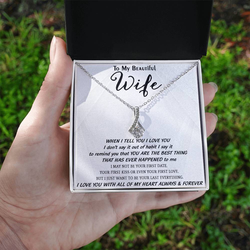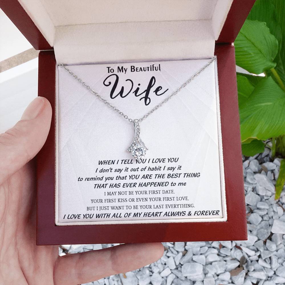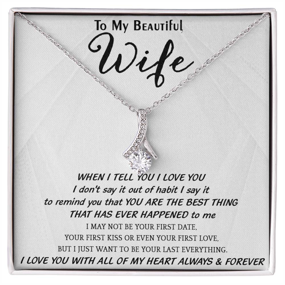 Imagine her reaction when she opens this stunning gift! The Alluring Beauty necklace features a petite ribbon shaped pendant that is sure to dazzle your special someone. Whether it's a birthday or anniversary, make sure to get her a gift she will love for years to come.