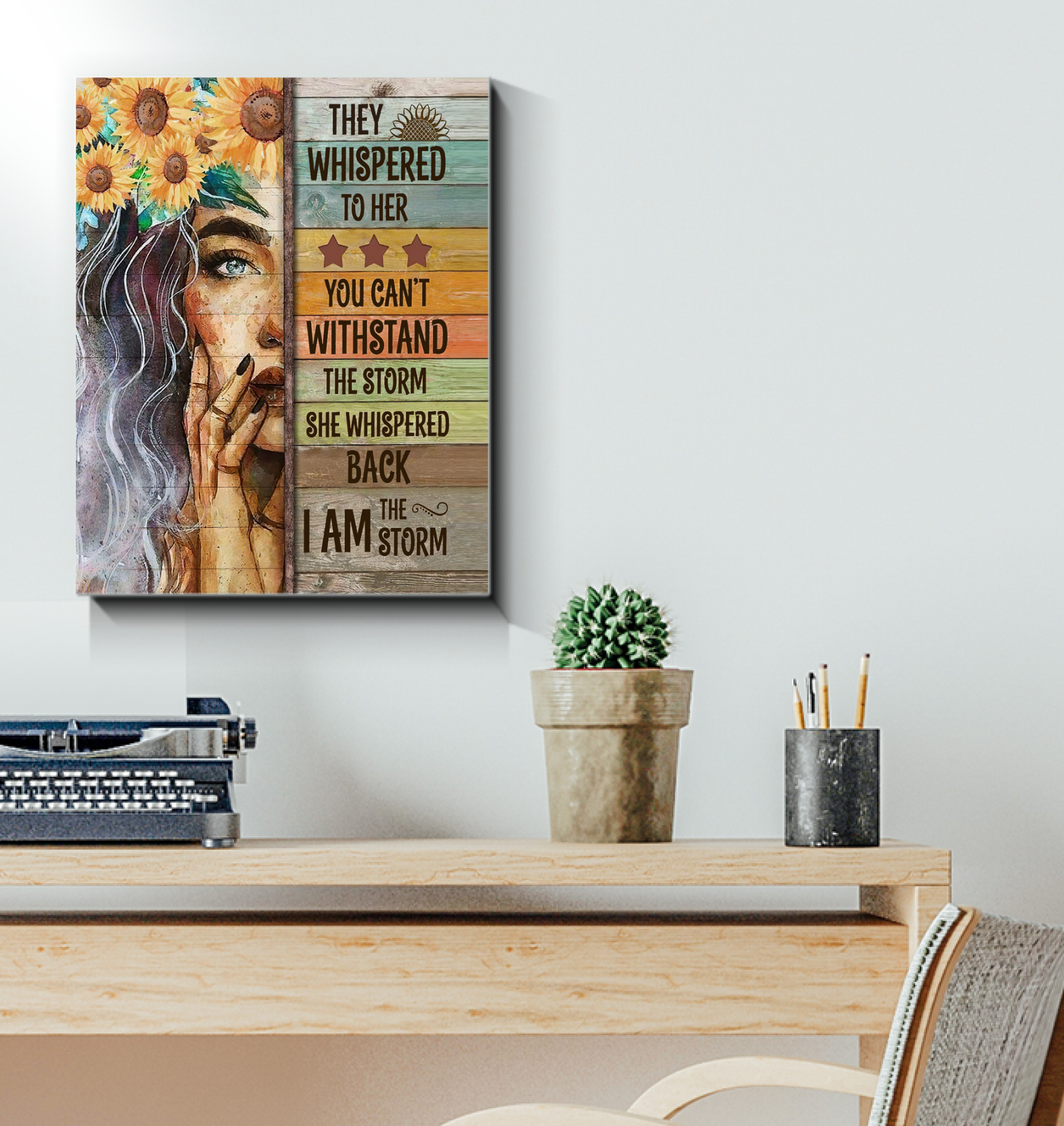 Native Girl She Whispered - Back I Am The Storm Sunflower Poster (Art Wall Canvas Framed Poster, 16x20)