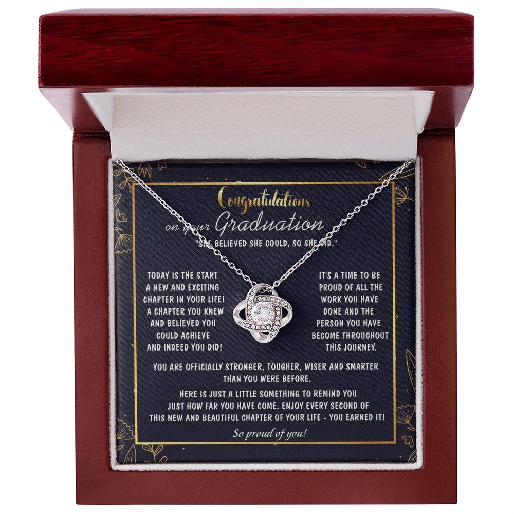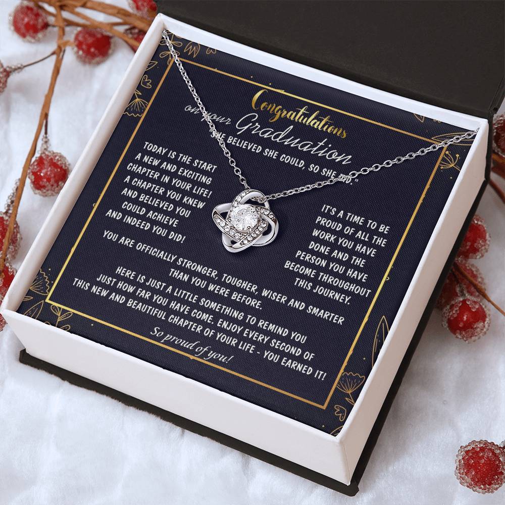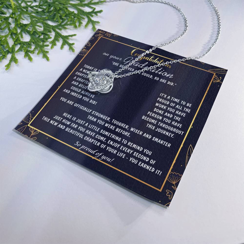 Imagine her reaction receiving this beautiful Love Knot Necklace. Representing an unbreakable bond between two souls, this piece features a beautiful pendant embellished with premium cubic zirconia crystals. Surprise your loved one with this gorgeous gift today!