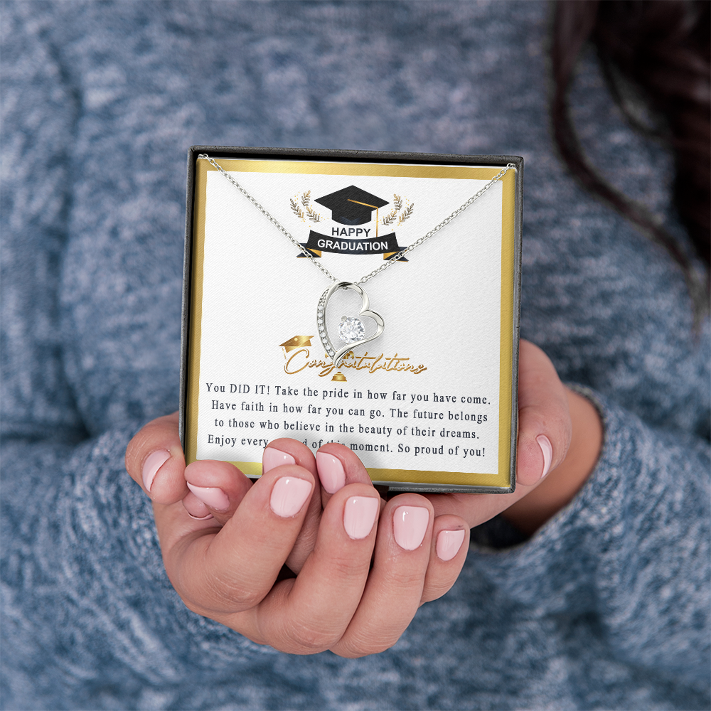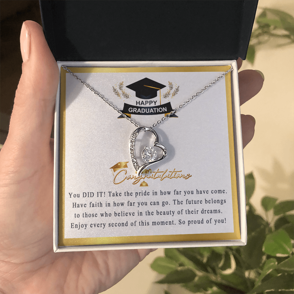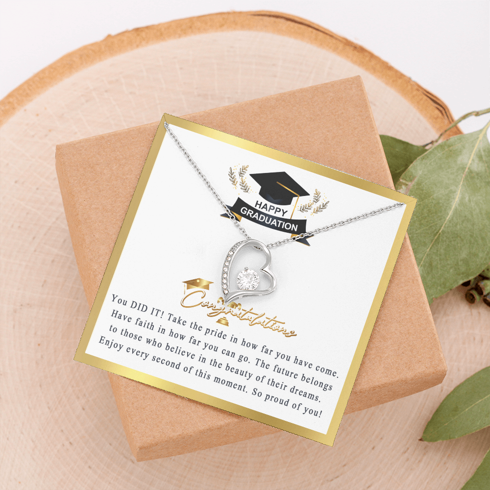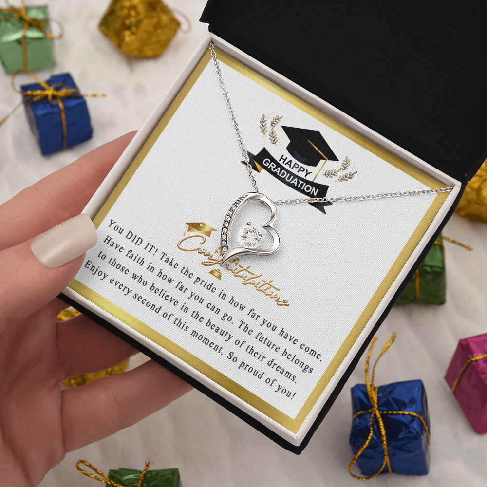 The dazzling Forever Love Necklace is sure to make her heart melt! This necklace features a stunning 6.5mm CZ crystal surrounded by a polished heart pendant embellished with smaller crystals to add extra sparkle and shine. Beautifully crafted with either a white gold or yellow gold finish, be sure to give her a classic gift she can enjoy everyday.